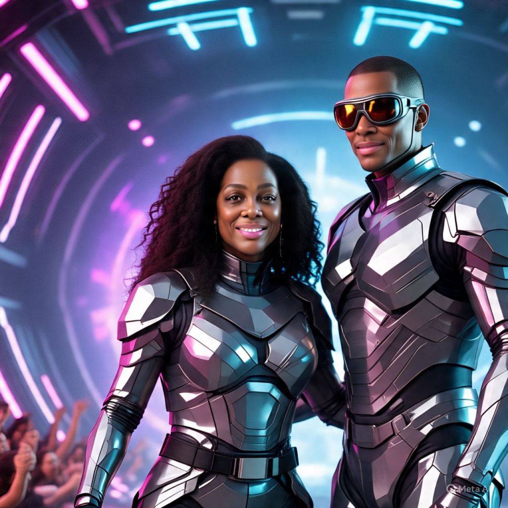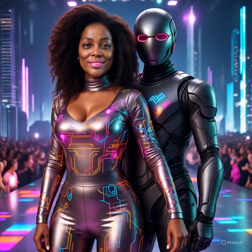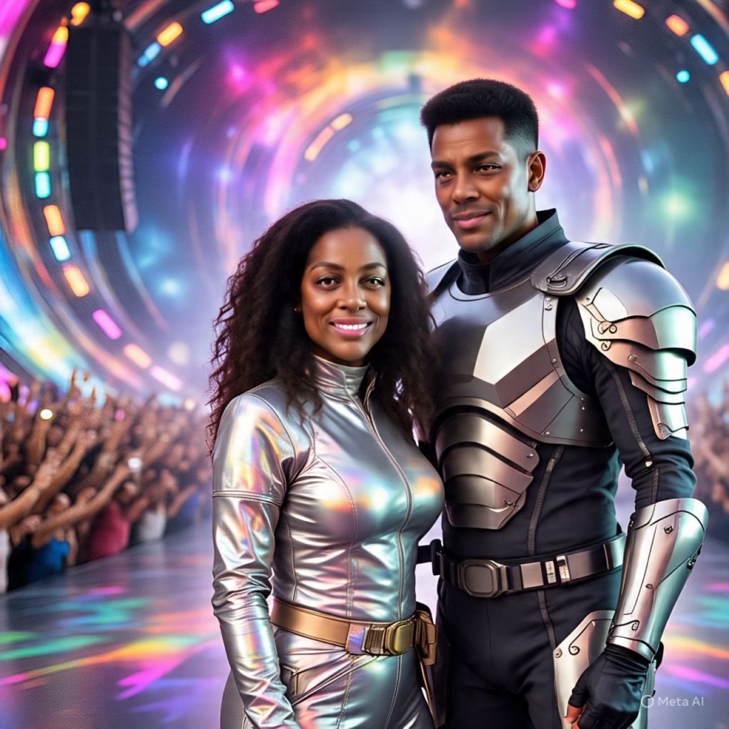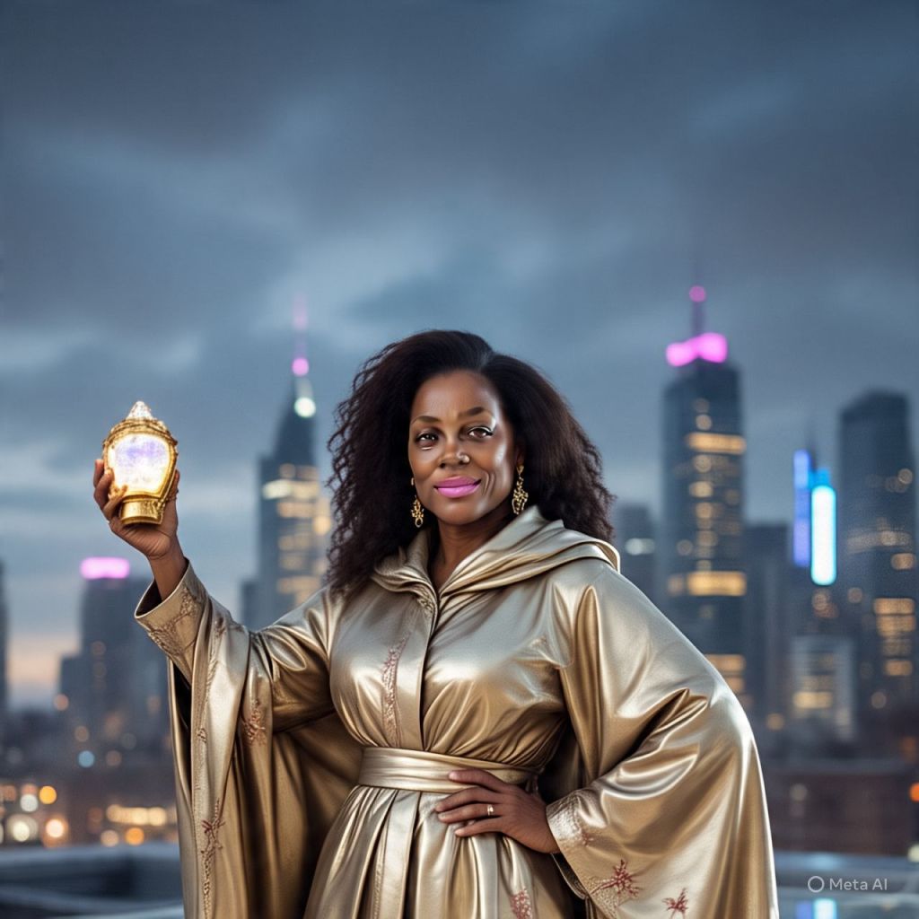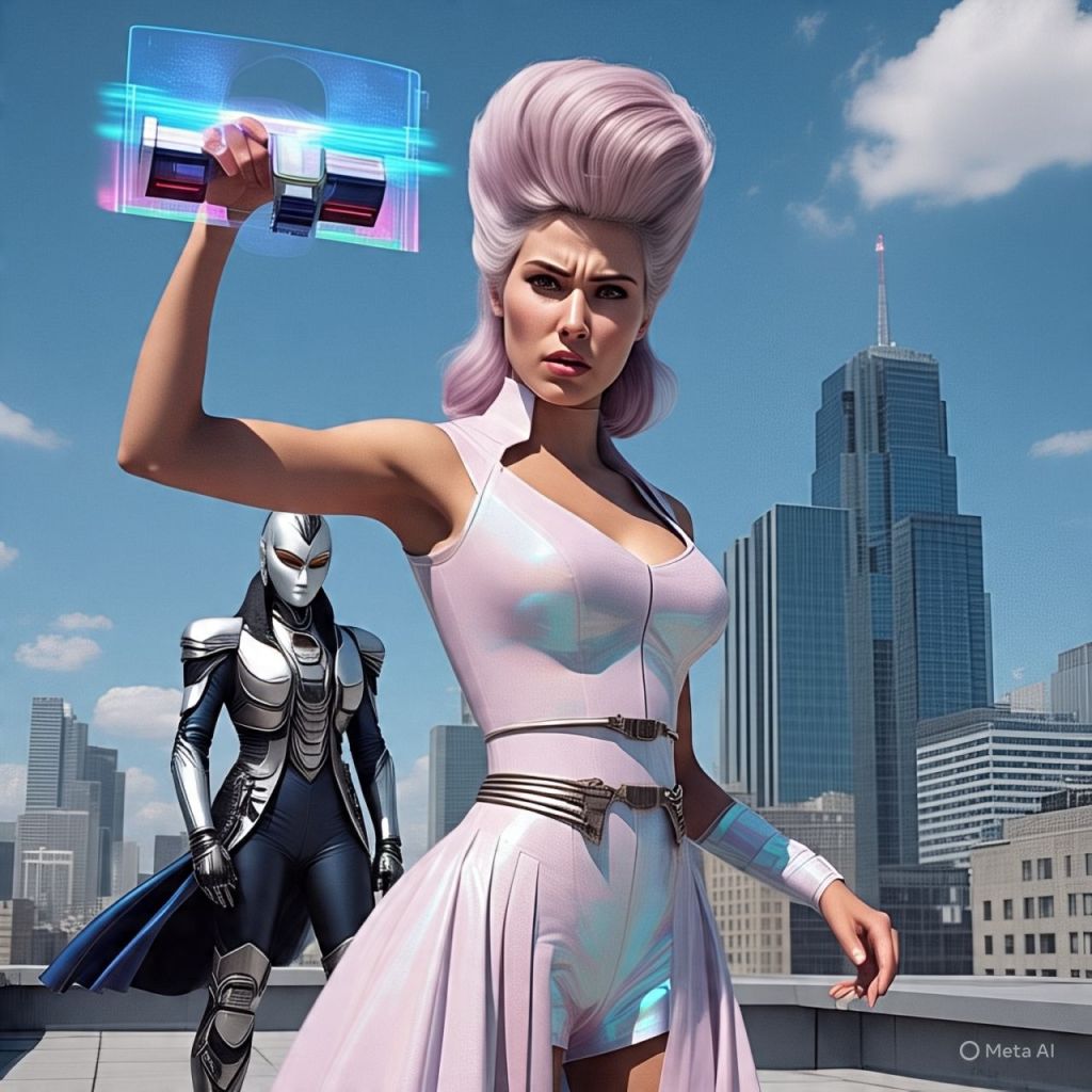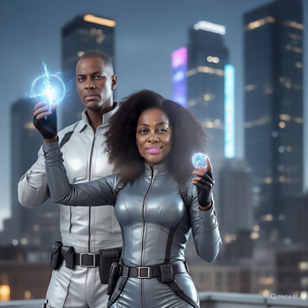 🎥 [Camera zooms in on Antoinette stepping out of a futuristic blacked-out hover vehicle, hair flowing, skin glowing, all eyes on her.]