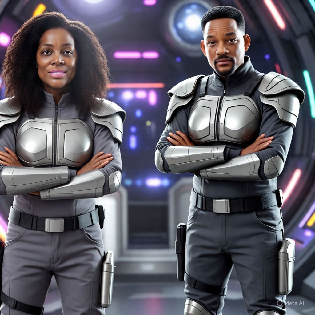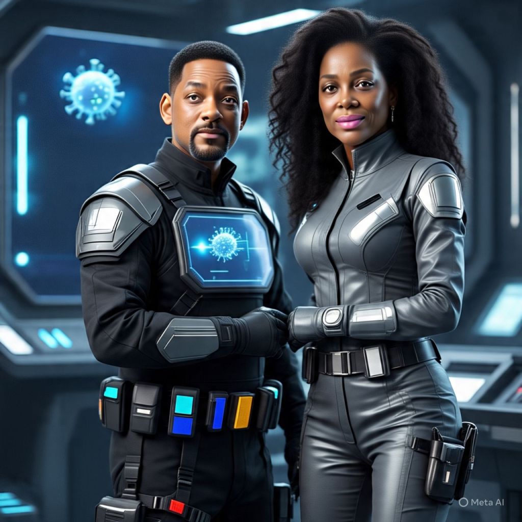 [Everyone instantly stops dancing, switches to warrior mode. Will loads his futuristic plasma cannon. Megan activates her blade arms. Sonny’s eyes turn electric blue. Lyrical Viper stands tall, eyes glowing bright gold.]