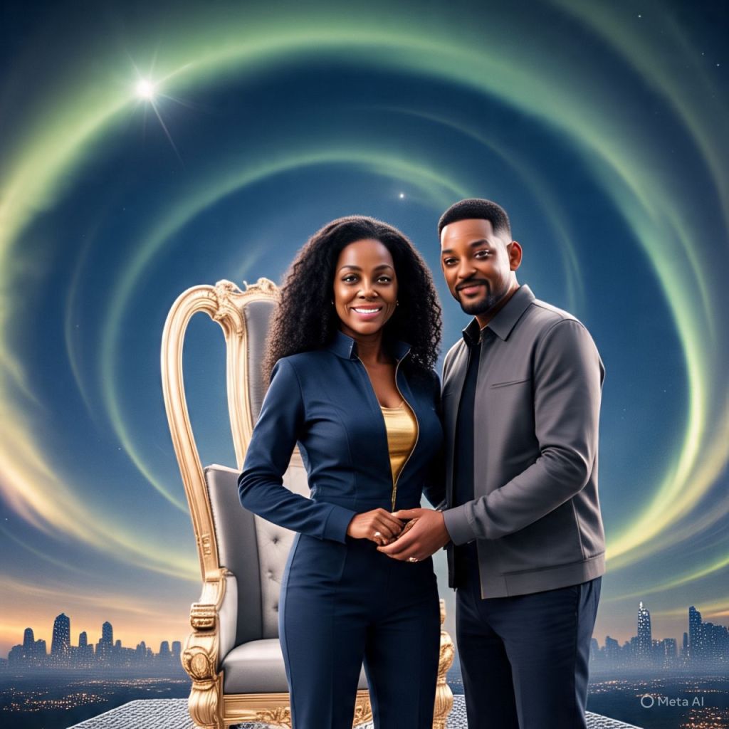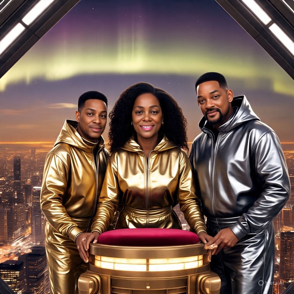 [Earth’s skyline covered in golden auroras. Megan 2.0, Sonny, and Will Smith stand on a floating platform, preparing the ultimate divine defense. Megan is DJing cosmic beats, Sonny tries last-minute hip rolls, Will polishes his cosmic plasma gun while hyping up the crowd.]