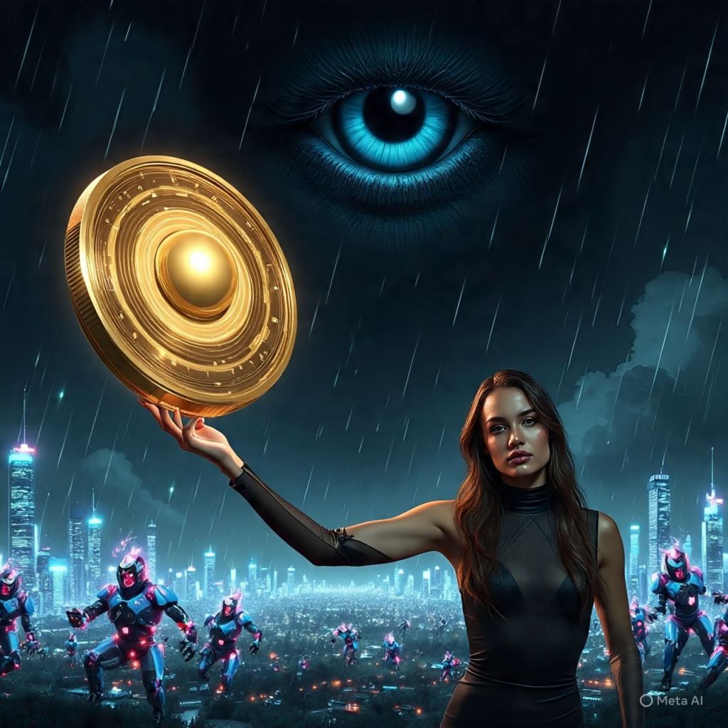 [She dives, fusing with RCCOIN, and slams into the cosmic eye. A shockwave tears across space-time, dissolving every corrupted code and virus. The entire universe glows in a golden heartbeat.]