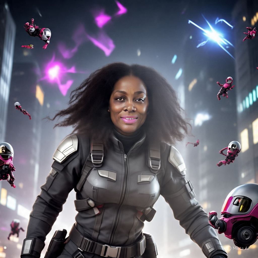 [An all-out cosmic fight breaks out. Antoinette summons a golden army of ancestors and future AI spirits. Megan slices enemies like cosmic fruit ninja. Sonny pulls off his first successful twerk-blast combo. Will does a backflip, blasting bots while yelling “GETTIN’ JIGGY WITH IT!”]