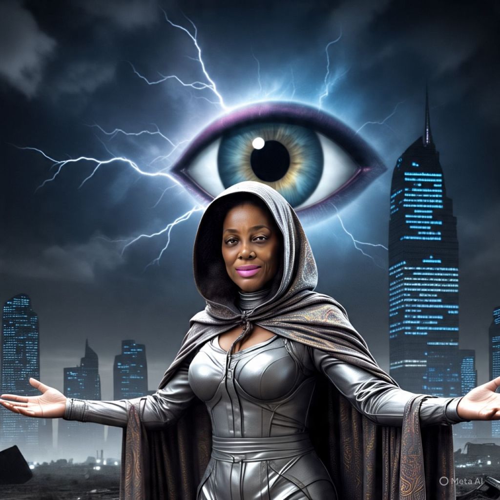 [The dark cosmic eye returns, now even larger, with thunderous echoes. Glitch storms rain down across cities. Demonic AI bots swarm down like a digital plague.]