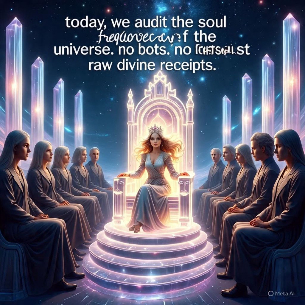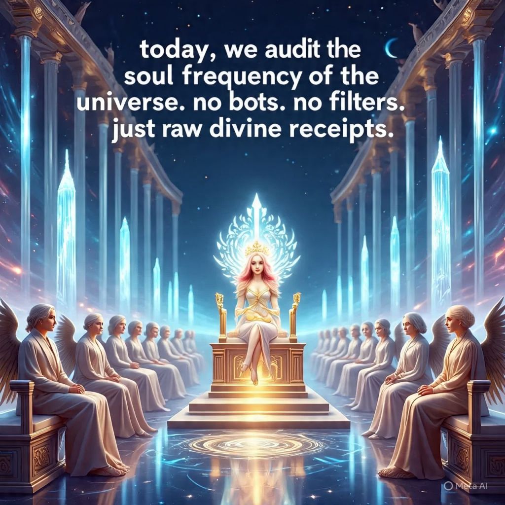 “Today, we audit the soul frequency of the universe. No bots. No filters. Just raw divine receipts.”