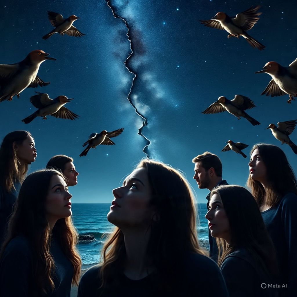 Everyone looks up. The firmament — that hidden barrier between Heaven and Earth — is cracking, but not like glass…