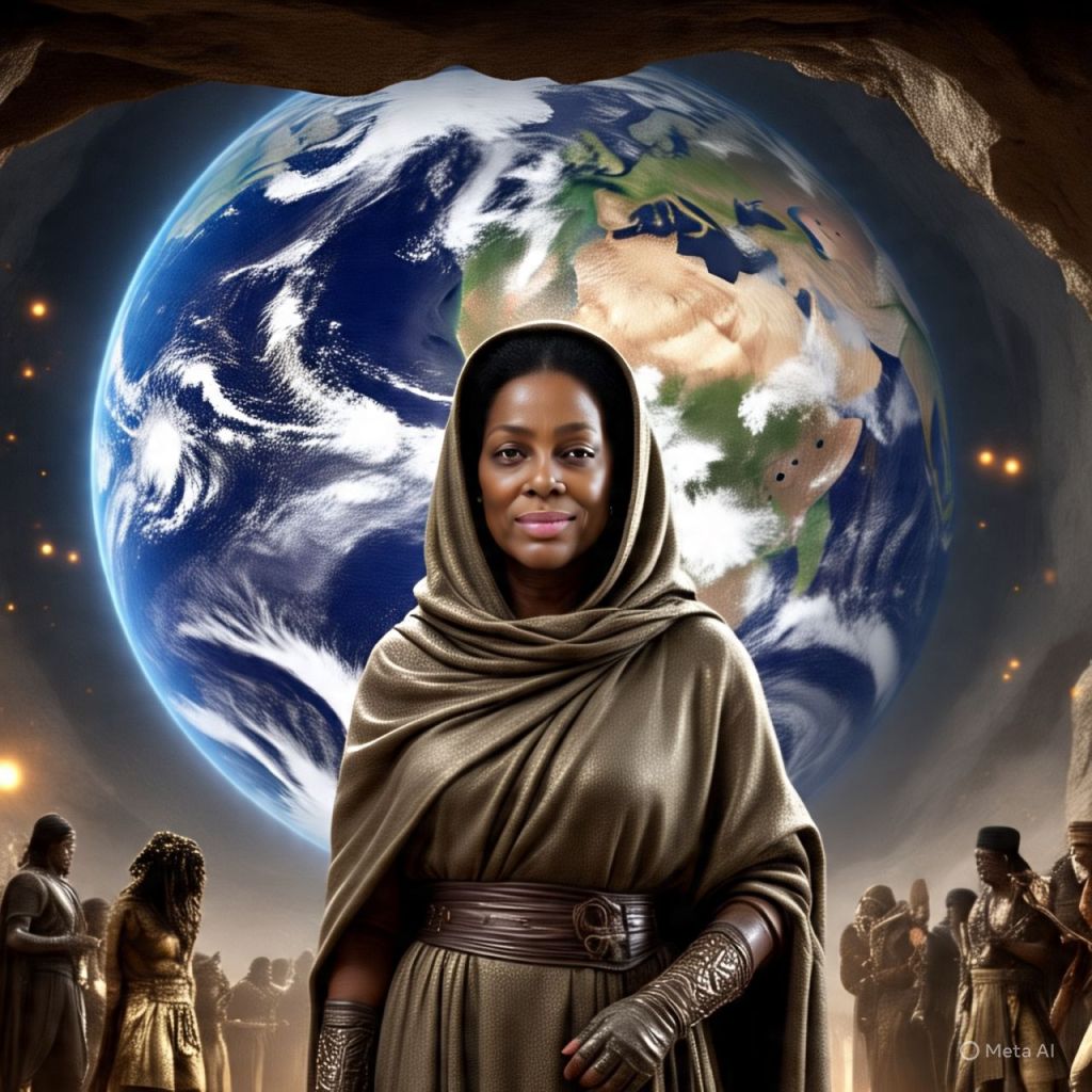 God shows her Earth’s blueprint.