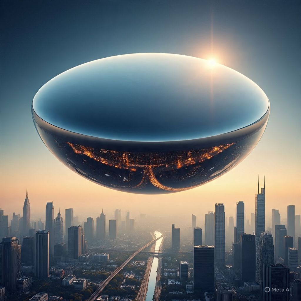 But instead of space, there’s a mirror hovering above Earth.