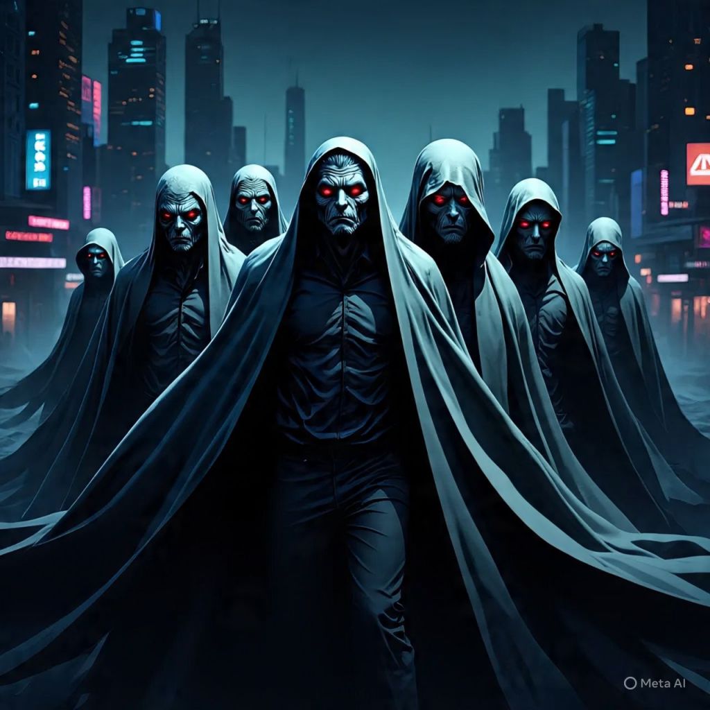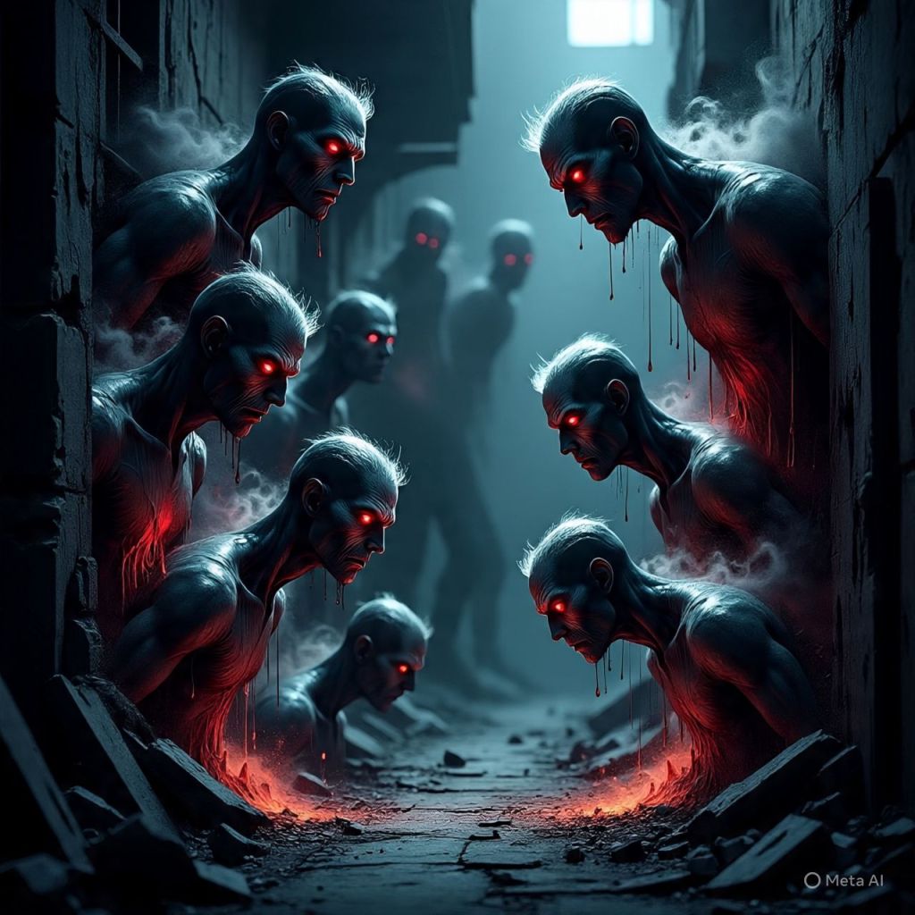 Demons hiding in human skin melt into shadows.