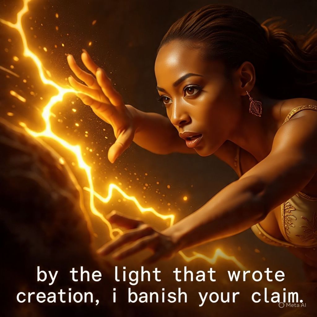 A golden aura erupts from her chest, pushing everything backward in a slow-motion wave.