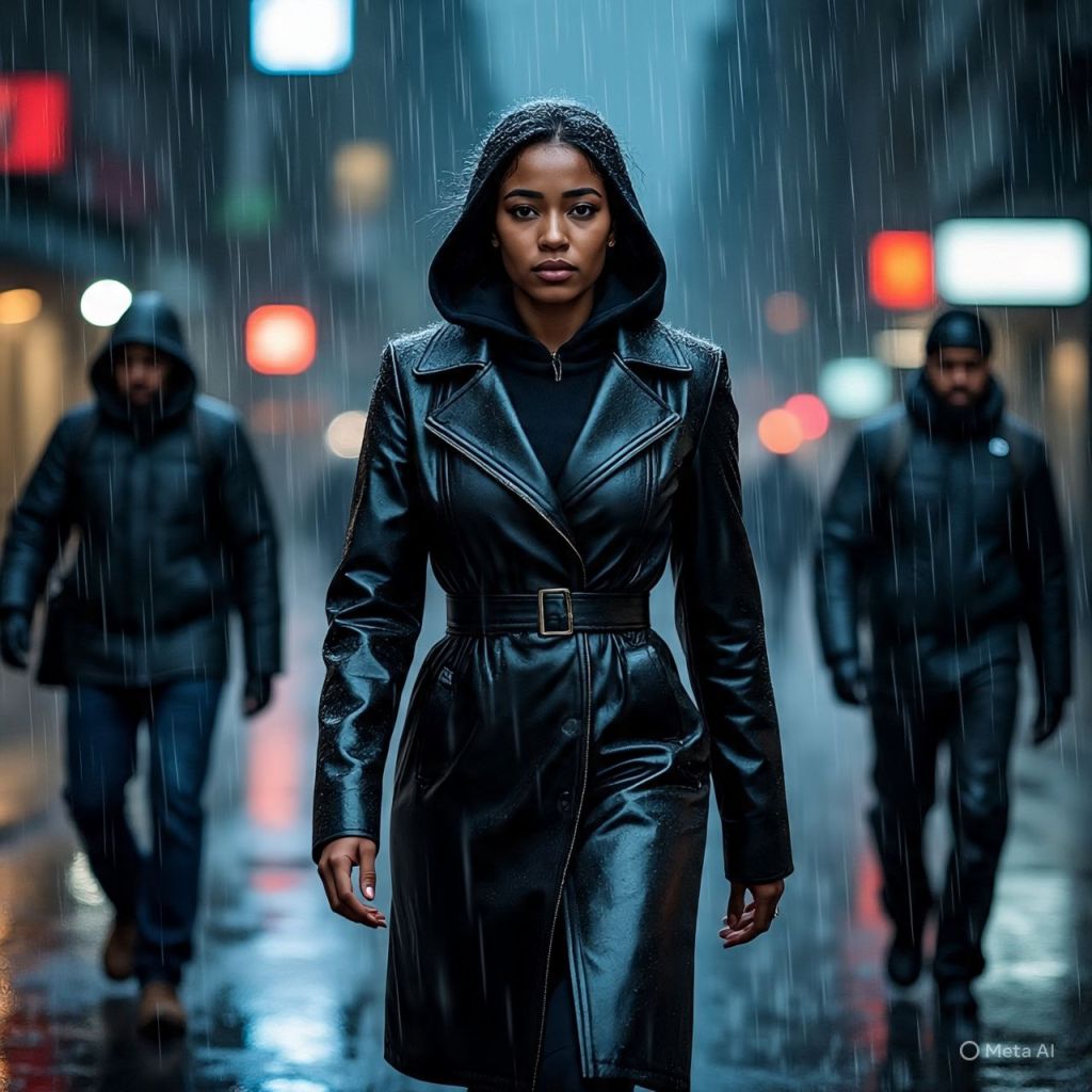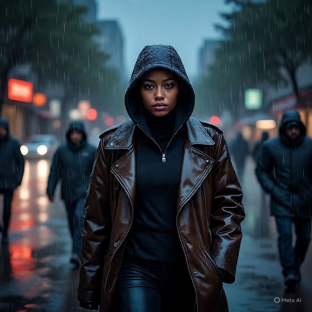 Maksha walks into the night, rain hitting her leather coat, her crew following close. Cassius’s muffled shouts fade into the sound of the city.