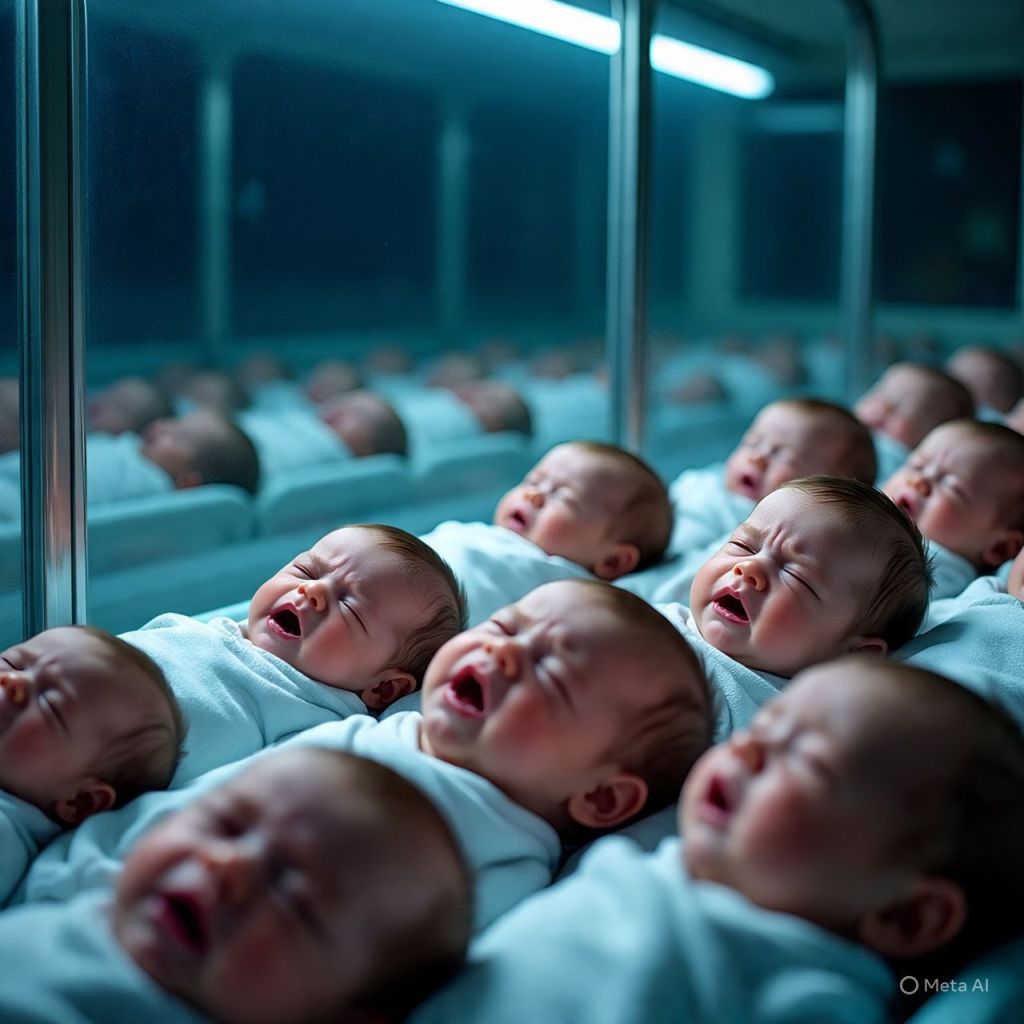 Then it happens—every baby cries at the exact same pitch, in perfect unison, shaking the glass walls.