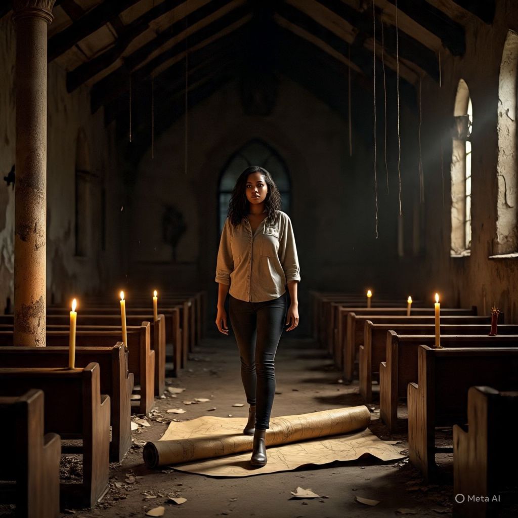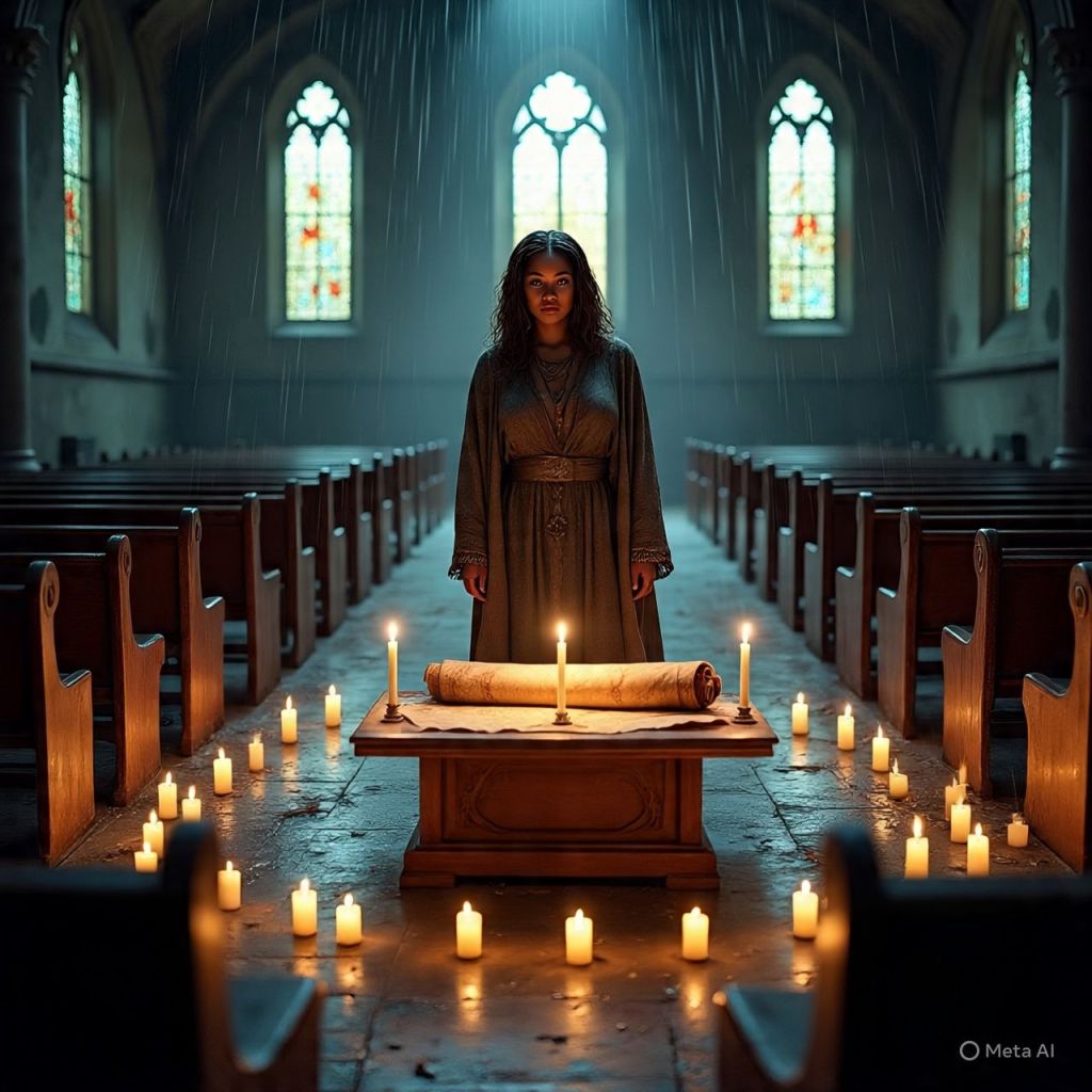 Thunder cracks across the city as Antoinette arrives at the coordinates Bishop Maalik gave her. The church is falling apart—pews rotting, stained glass shattered, rain dripping through holes in the roof.