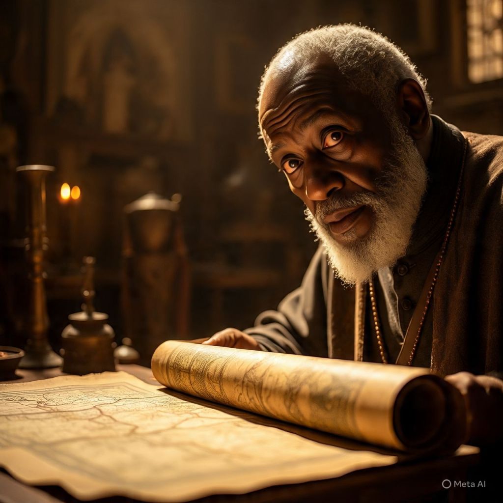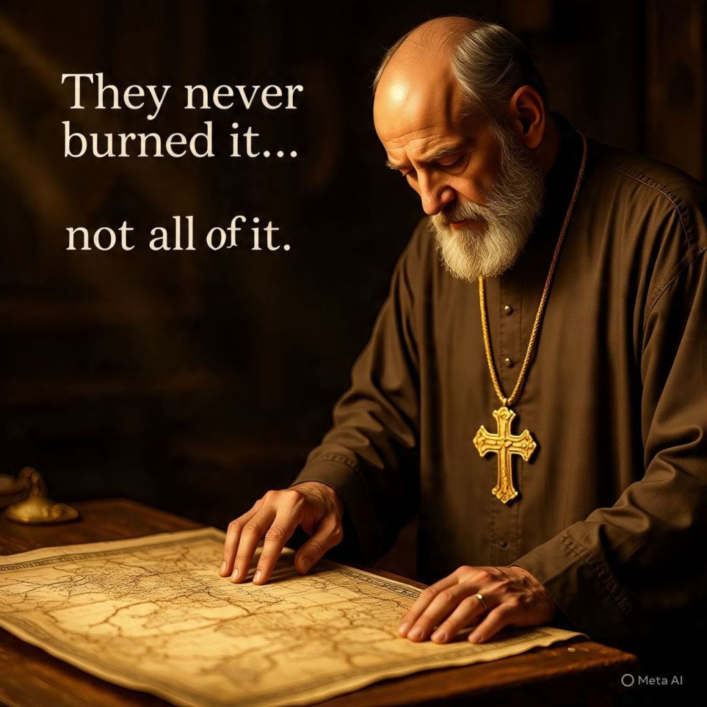 Candles burn in a perfect circle on the floor. In the middle, a single wooden table with a rolled-up animal-skin map glowing faintly in the dark.