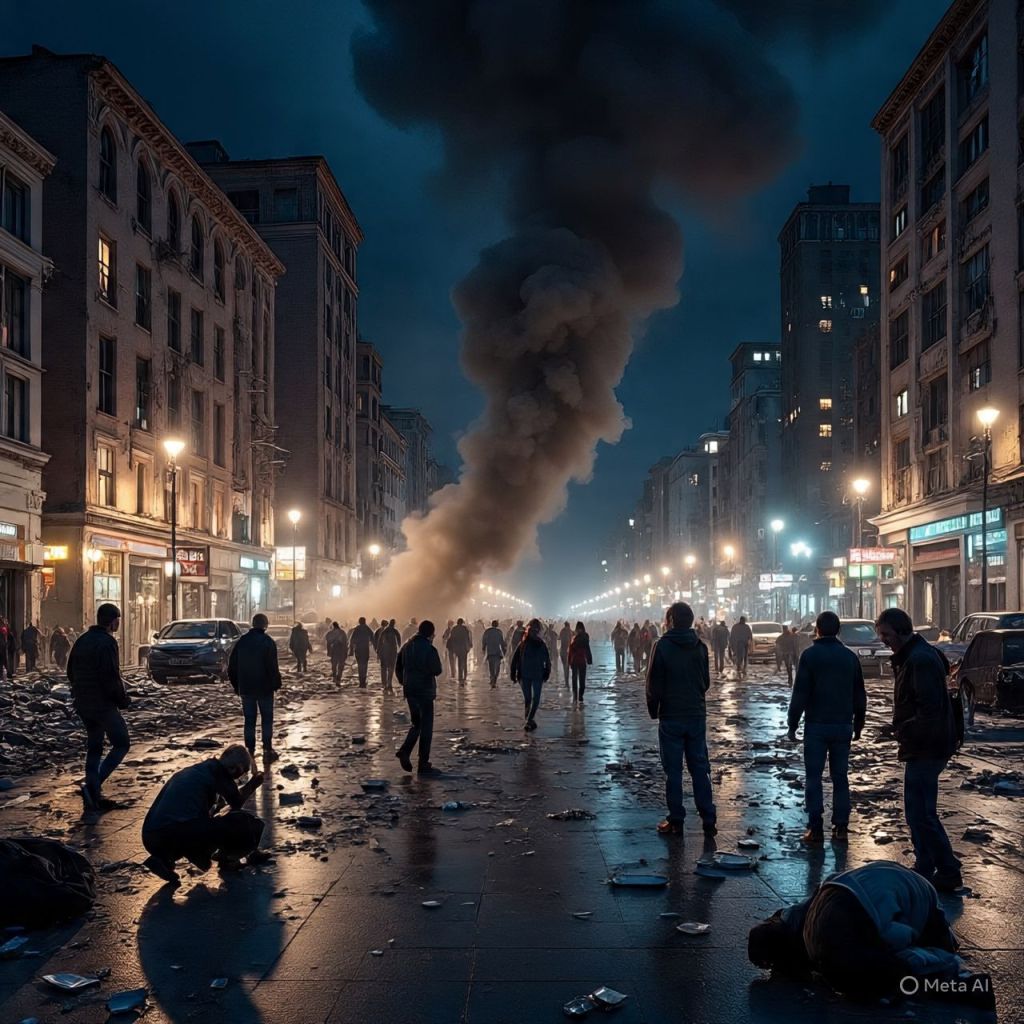 Survivors stumble like ghosts, coughing, bleeding, eyes wide with trauma. Some pray. Some laugh hysterically, broken by what they’ve seen.