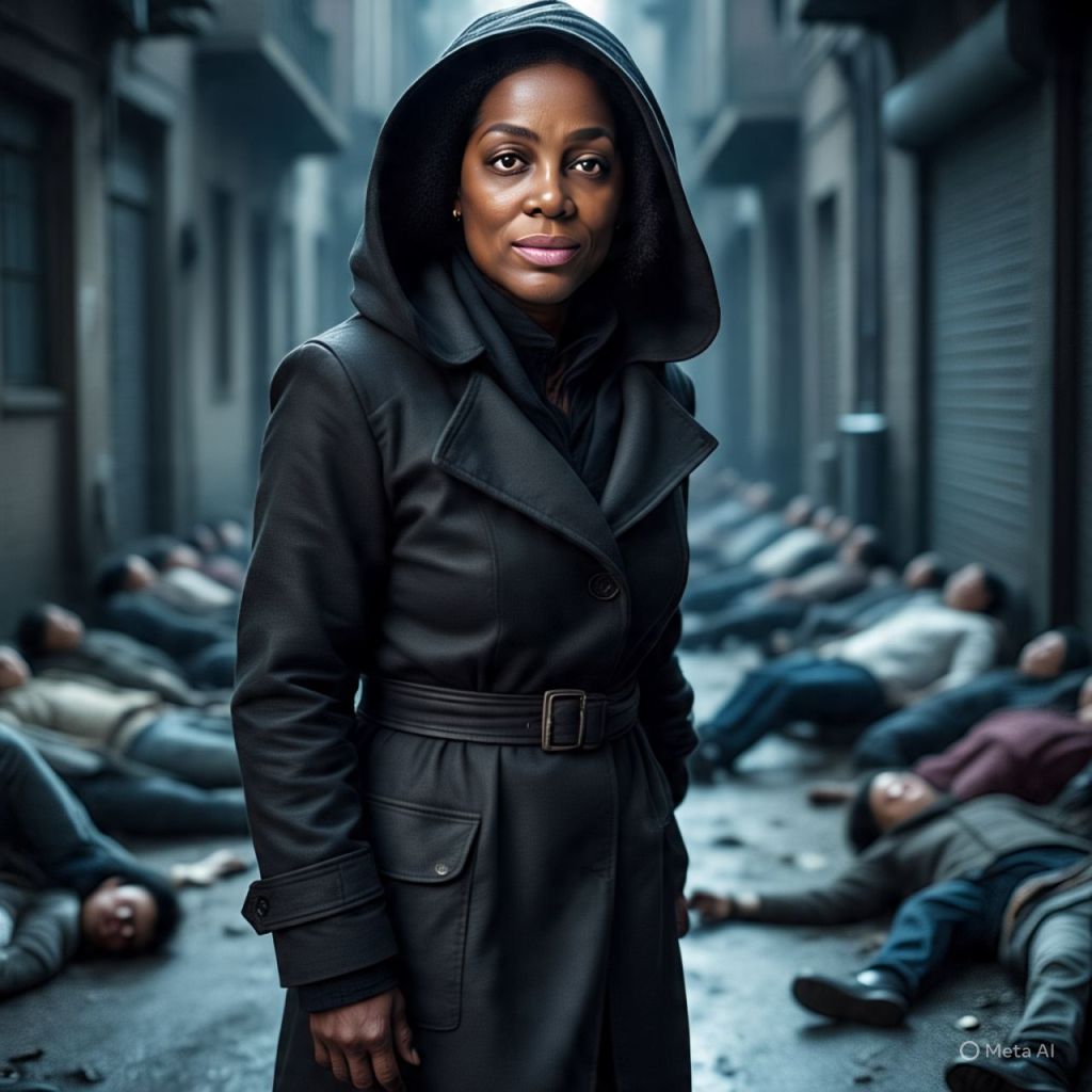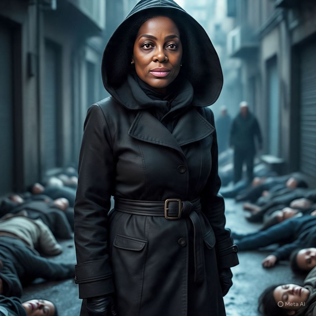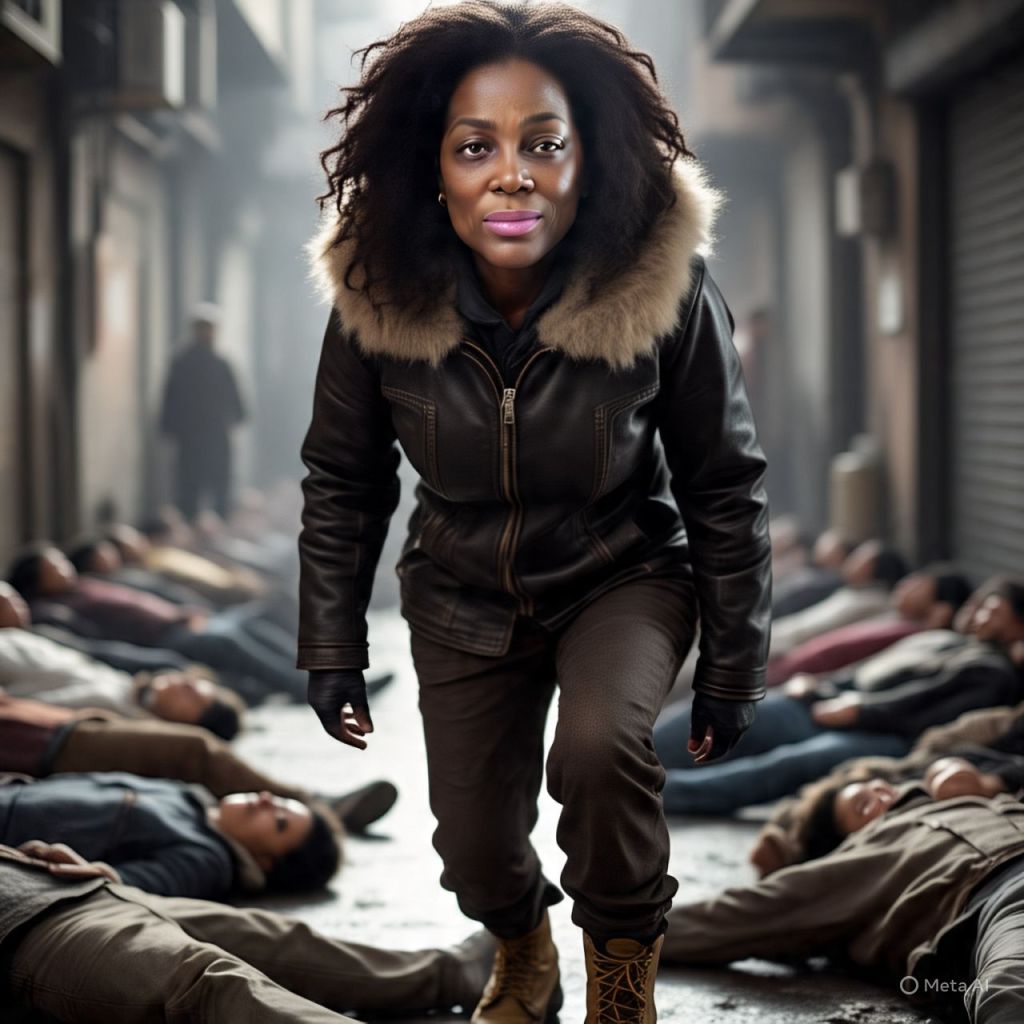 In the middle of it all—Antoinette lies on the ground, blood streaming from her nose, her chest rising slowly. Beside her, Bishop Maalik drags himself up, his clothes torn and shotgun bent.
