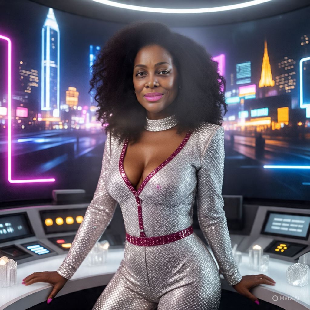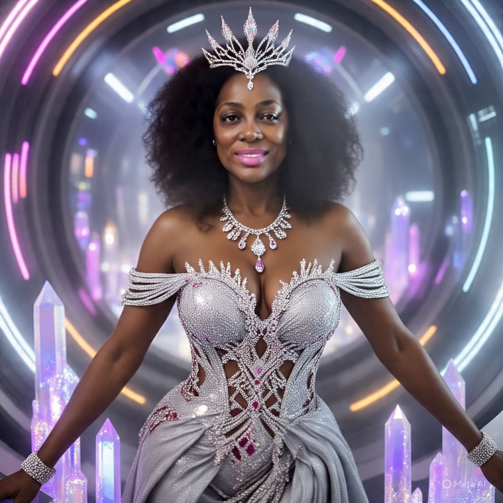 Antoinette arrives via a glowing crystal elevator, stepping out in a skin-tight holographic trench coat that changes color with each moan she takes. Crown glowing so bright, the Statue of Liberty starts waving.