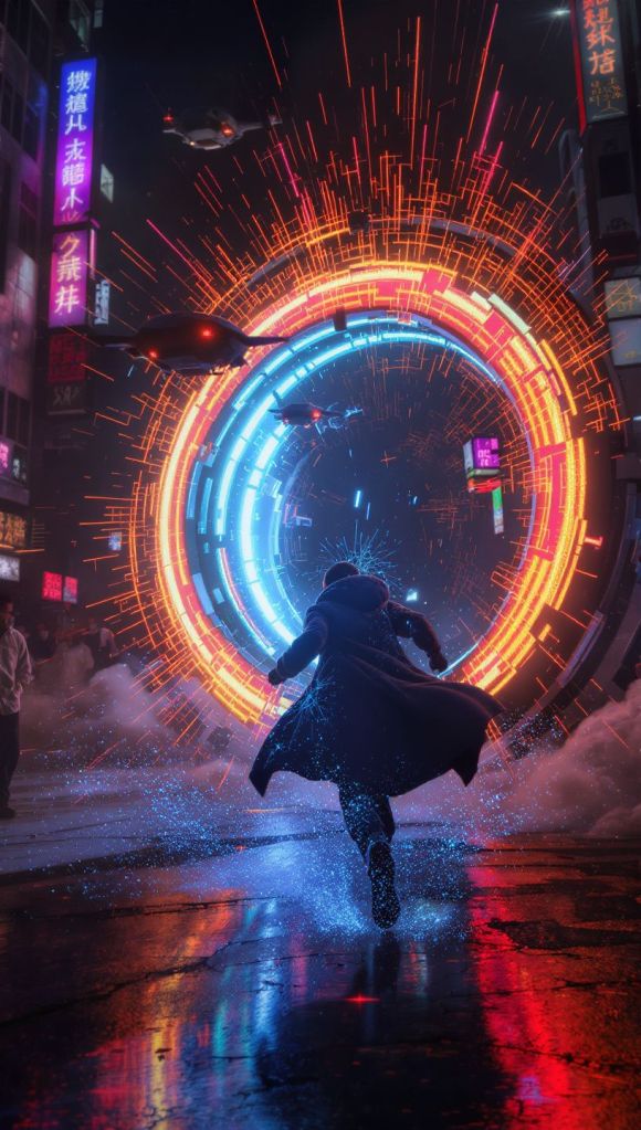 INT. PORTAL EXIT – NIGHT – FUTURISTIC CITY
