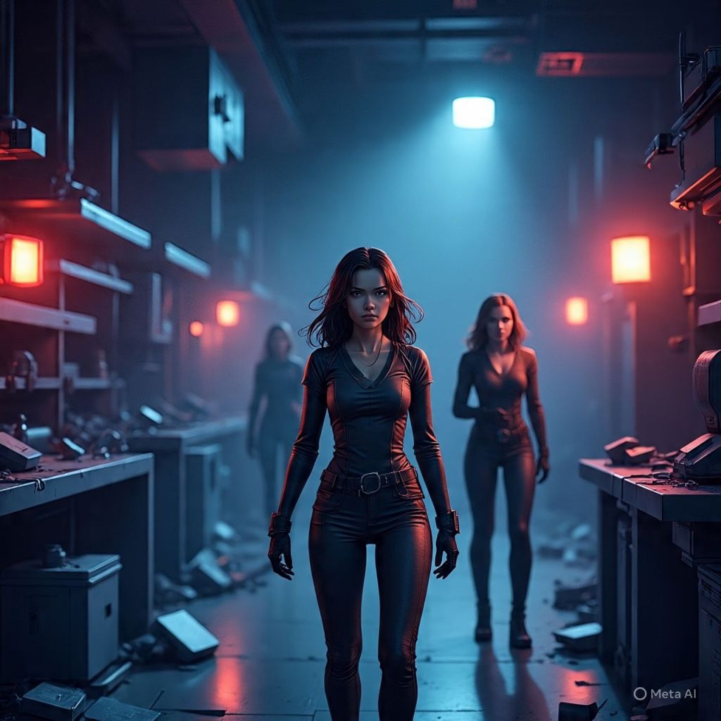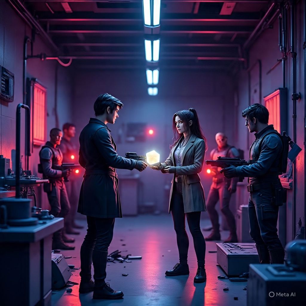 Elara shouts as she reroutes power. A section of the lab wall shifts, revealing a hidden subway tunnel of the future — sleek metal rails glowing faint blue.