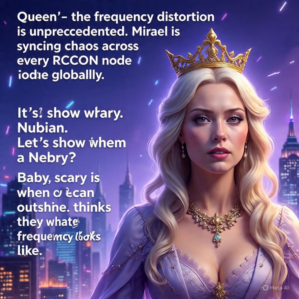“Queen… the frequency distortion is unprecedented. Mirael is syncing chaos across every RCCOIN node globally. It’s… scary.”