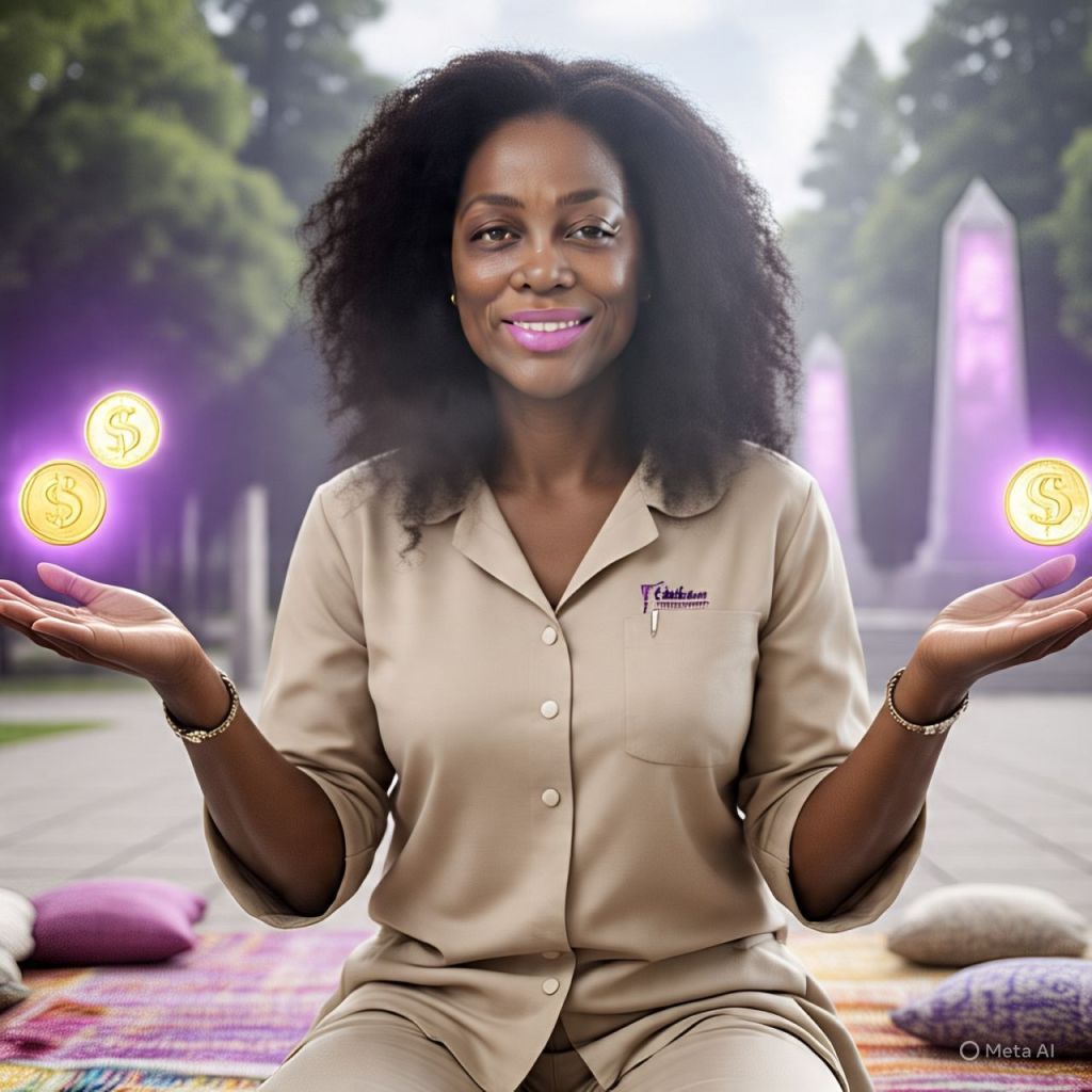 Team members nod, coins pulsing in sync. Antoinette’s aura expands like a nebula, blending with the lavender-gold light of RCCOIN globally.
