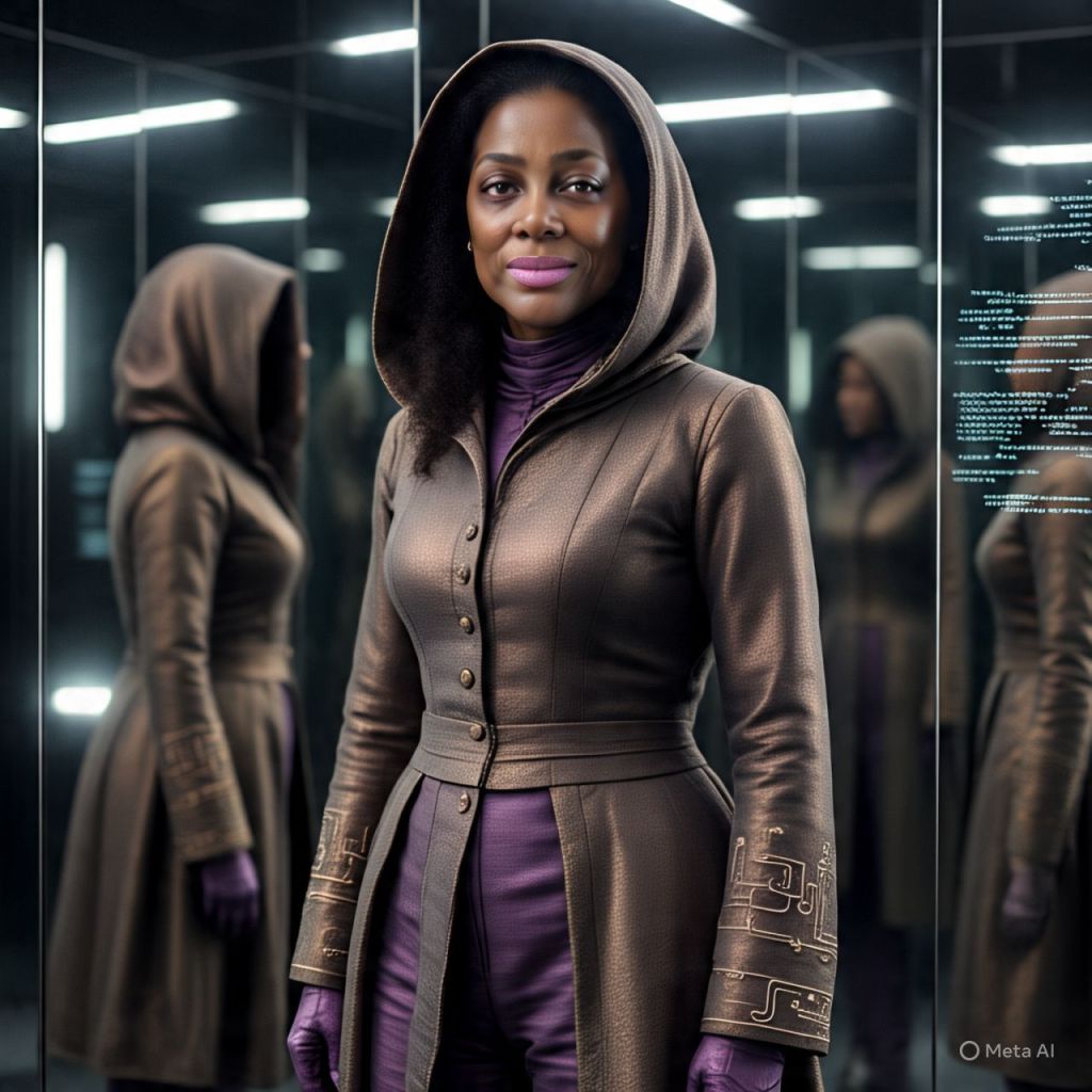 A holographic AI appears — The Architect — the one who designed both versions of her.