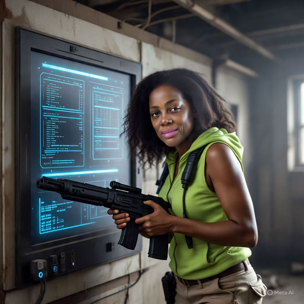 Antoinette hacks through a wall console, sweat dripping, muttering codes under her breath.