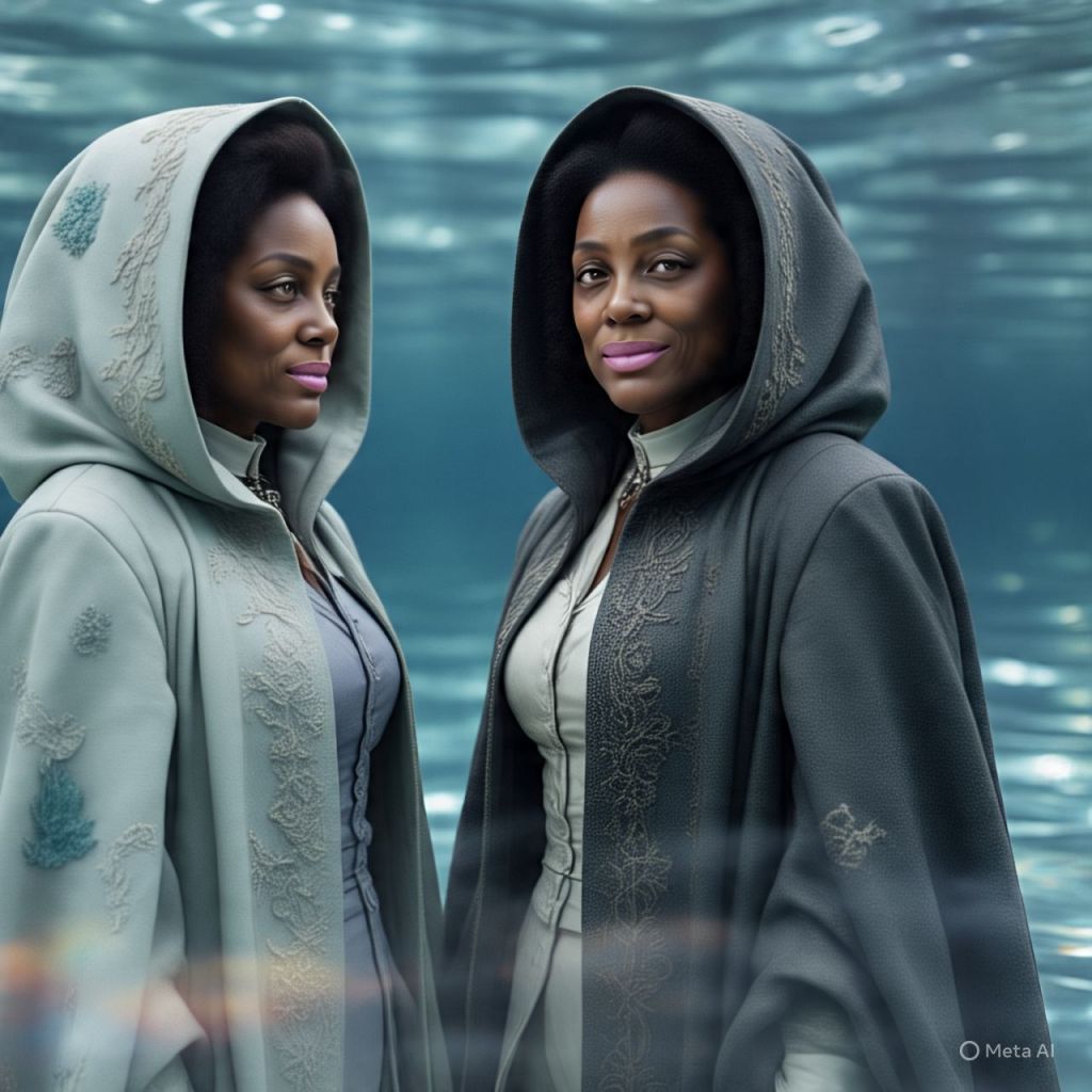 Antoinette stands face to face with her twin, the other her — calm, confident, eyes cold as mercury.