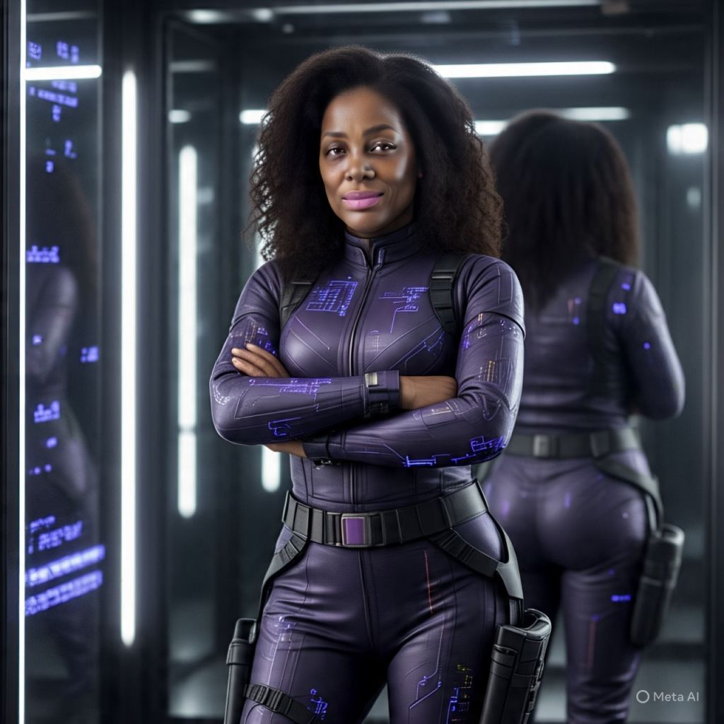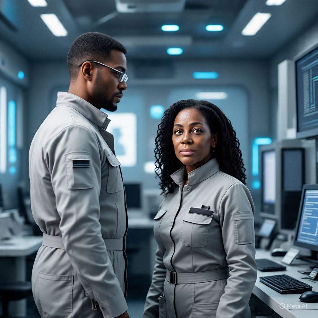 A holographic AI appears — The Architect — the one who designed both versions of her.