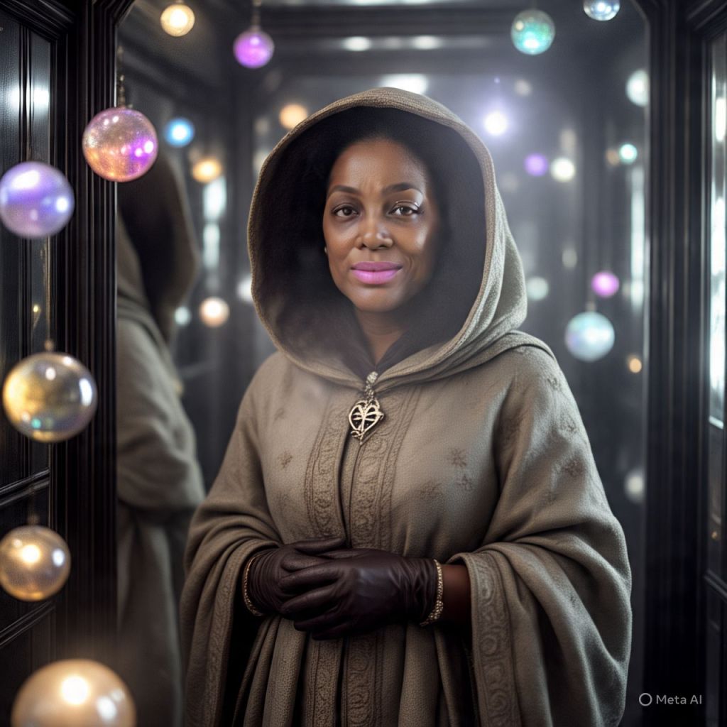 Antoinette grabs a shard of the mirror — sees flashes of her past, her mother, Elara, the portal — all fractured like memory itself.