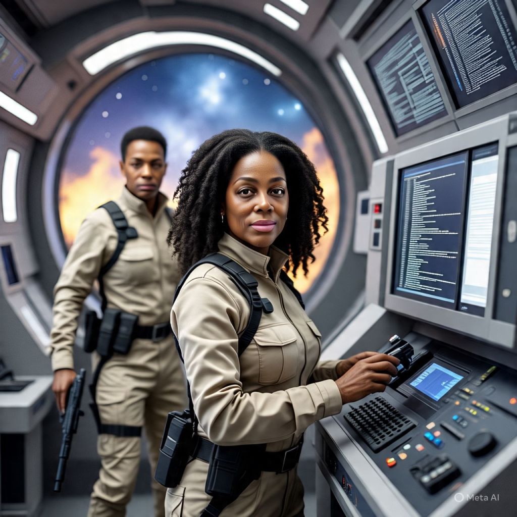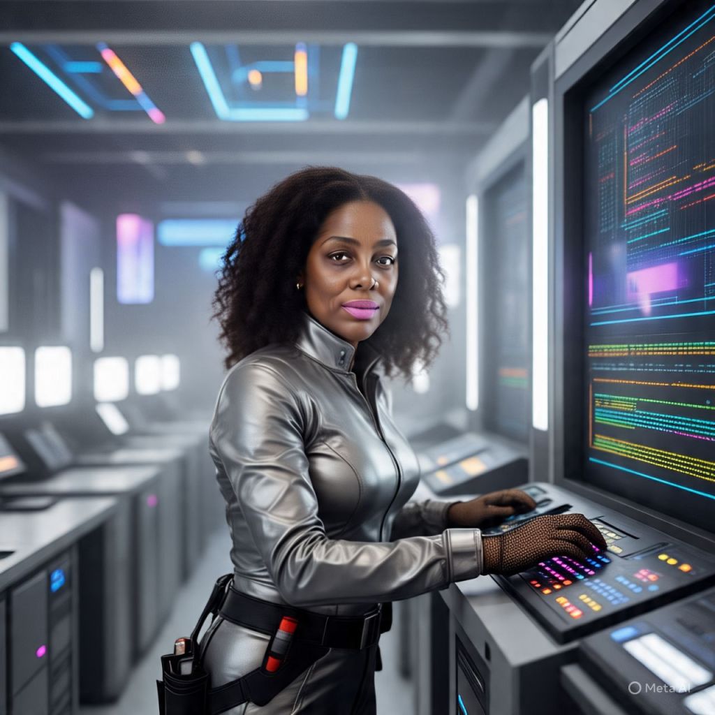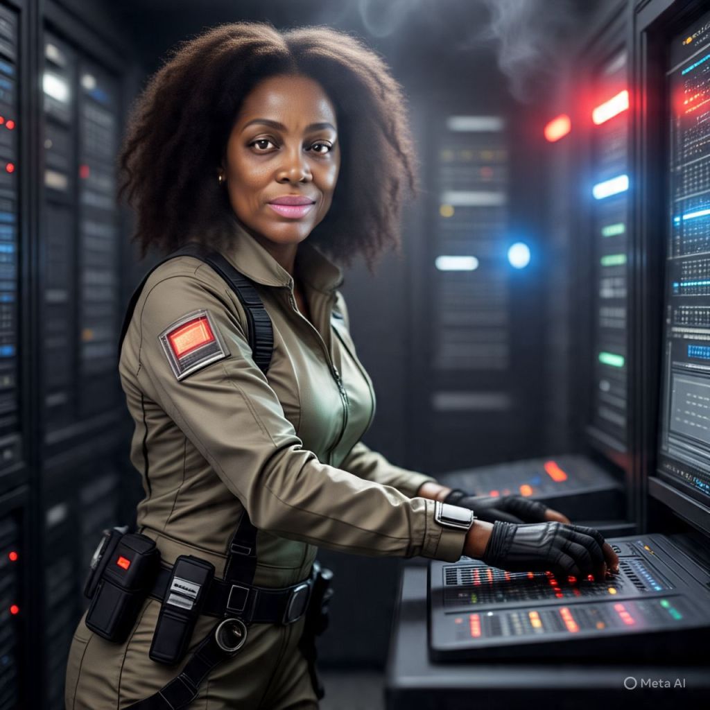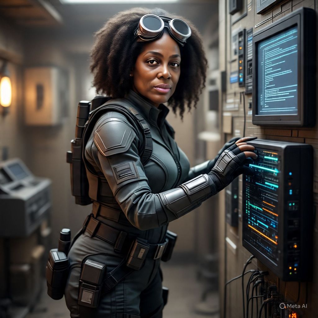 Antoinette hacks through a wall console, sweat dripping, muttering codes under her breath.