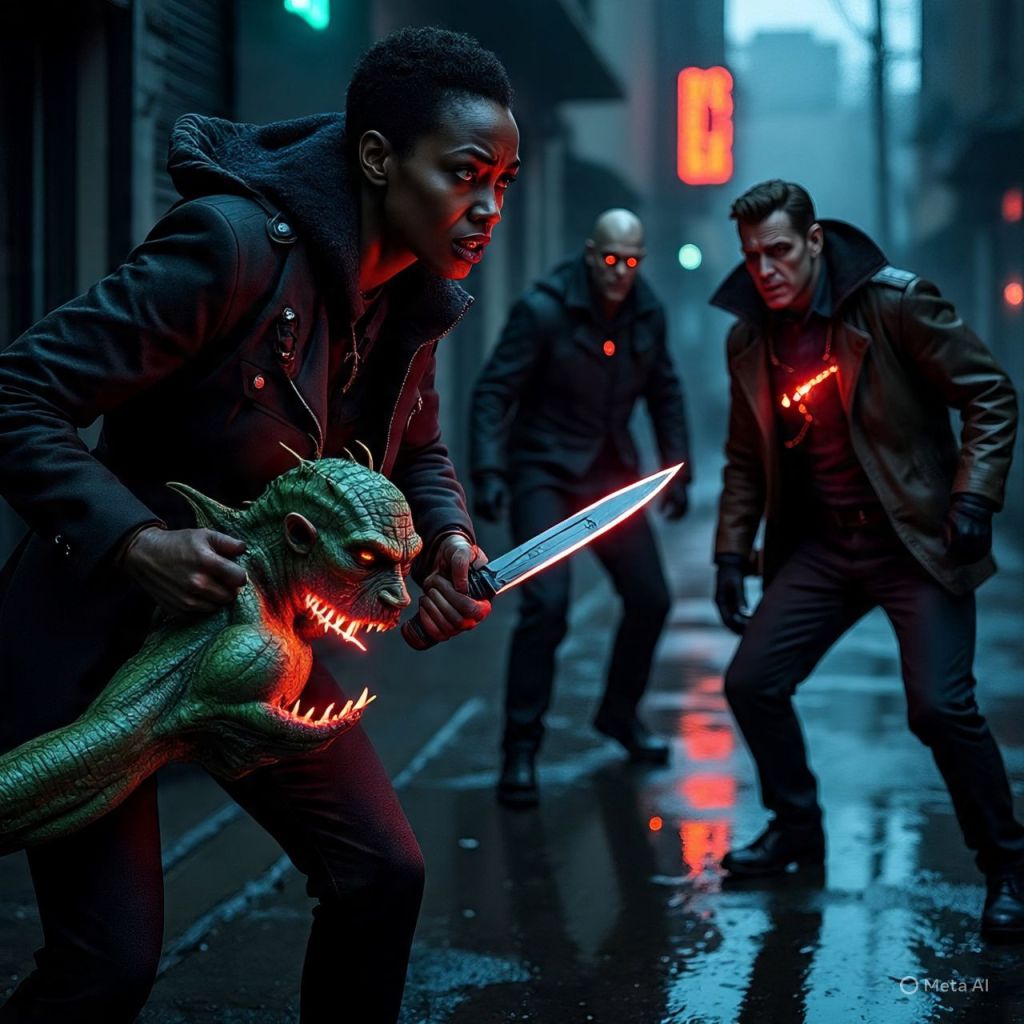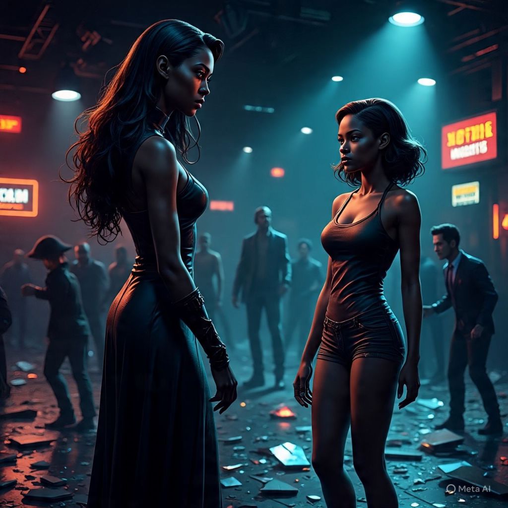 Antoinette refuses, igniting a brawl that tears through the nightclub — glass shatters, neon flickers, bodies explode into ash. She escapes through a vent as the city alarms blare.