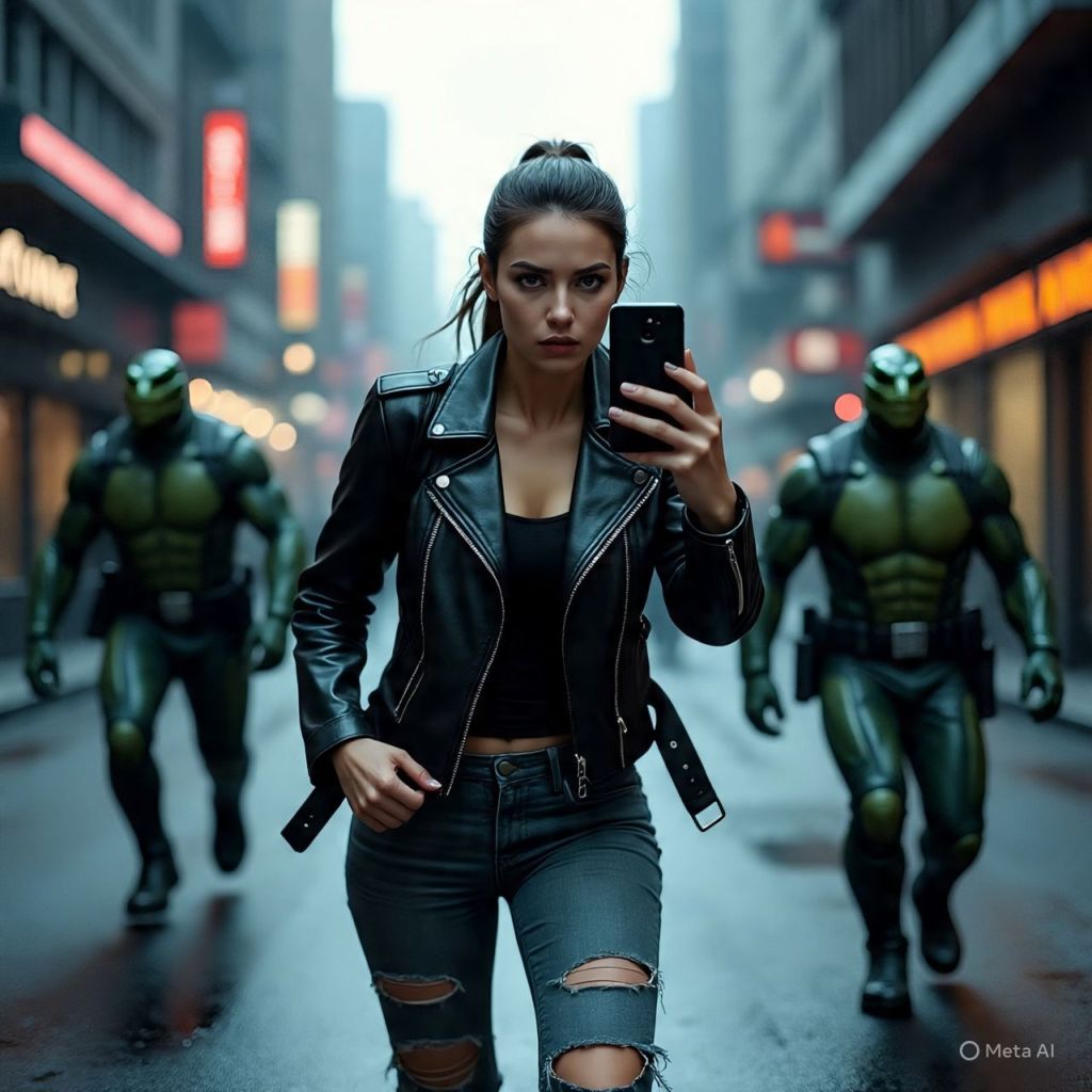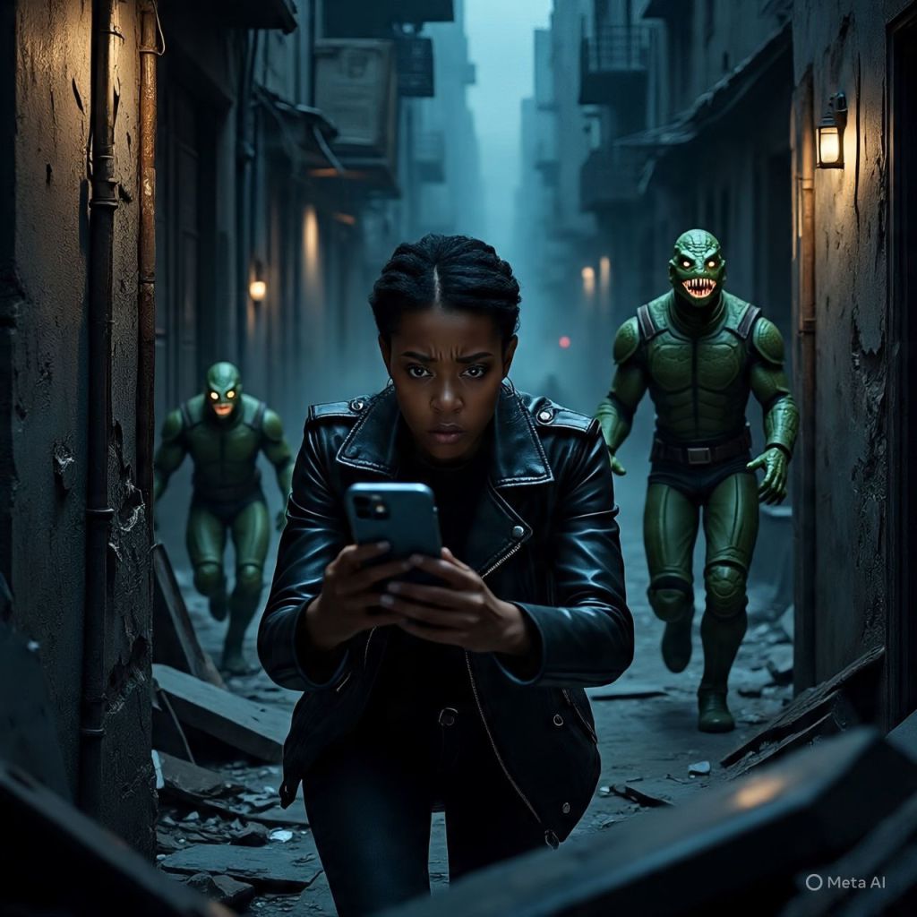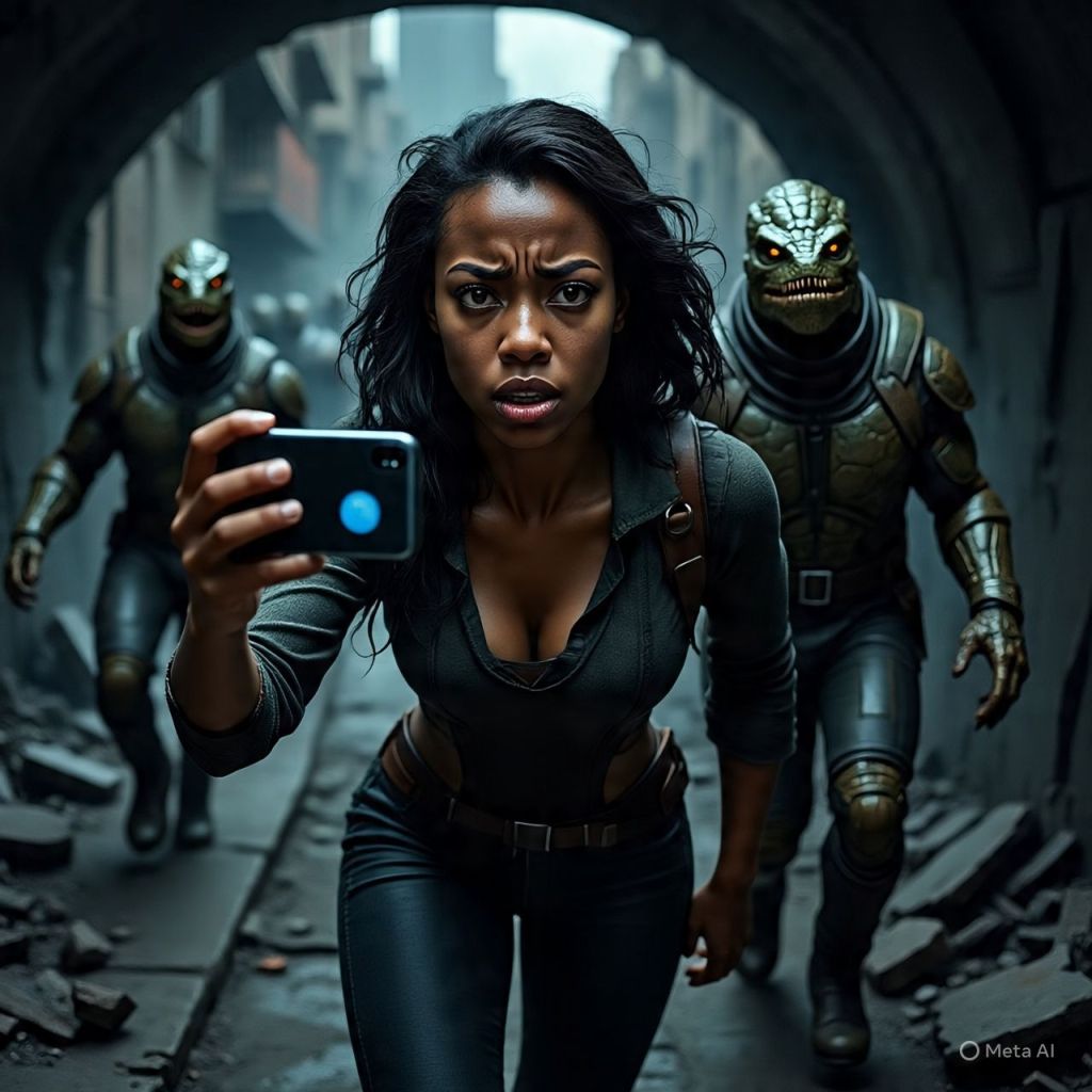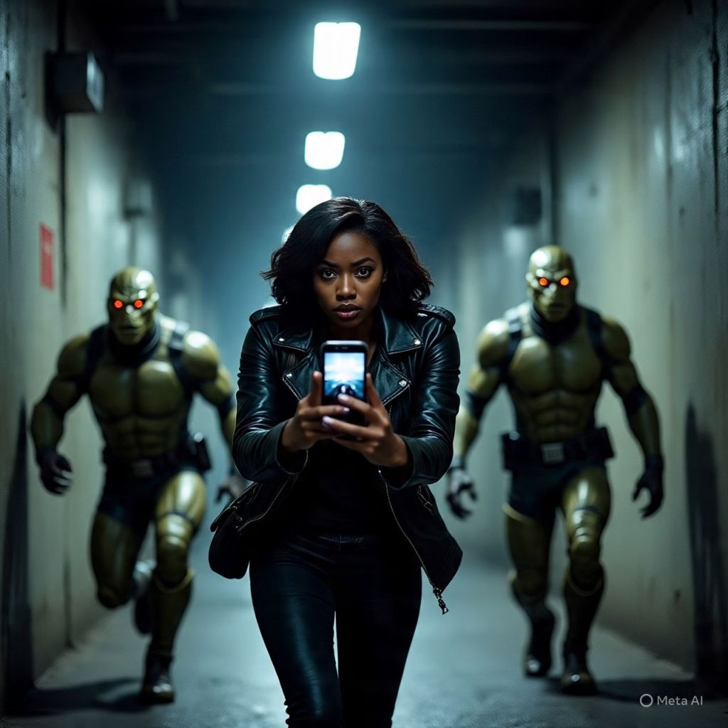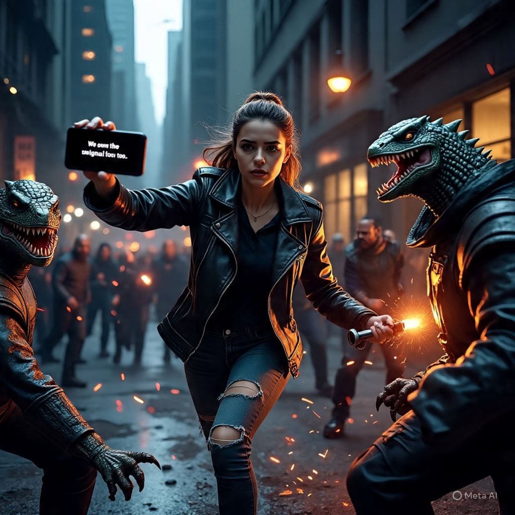 A voice in her phone whispers, “We own the signal too.”