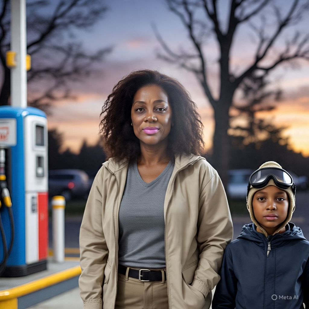 The 21-year-old mechanic, Christian, enters the gas station with two older men — Bill (60s) and Ray (50s).