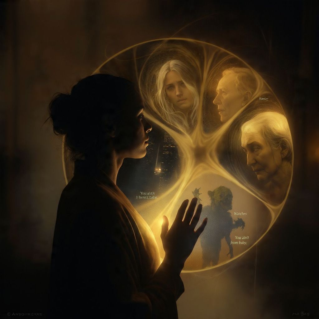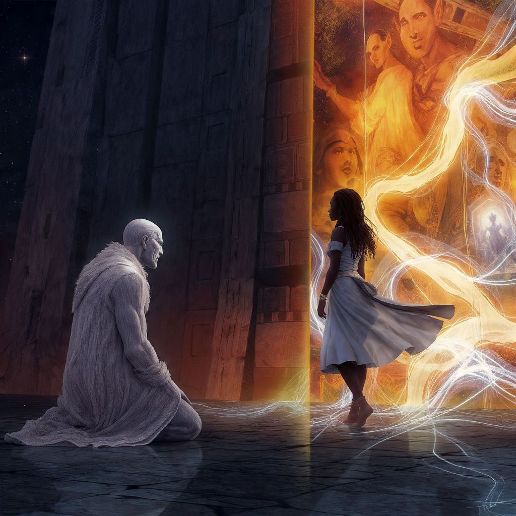 It lights up, showing holograms of ancient wars — Reptilians, Vampire clans, and a third species of light beings who walked the Earth before humans.