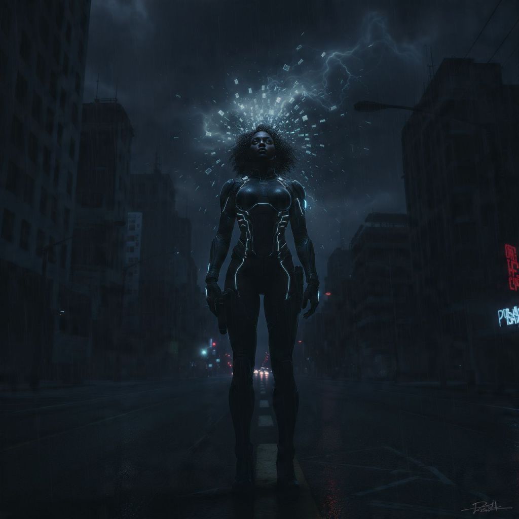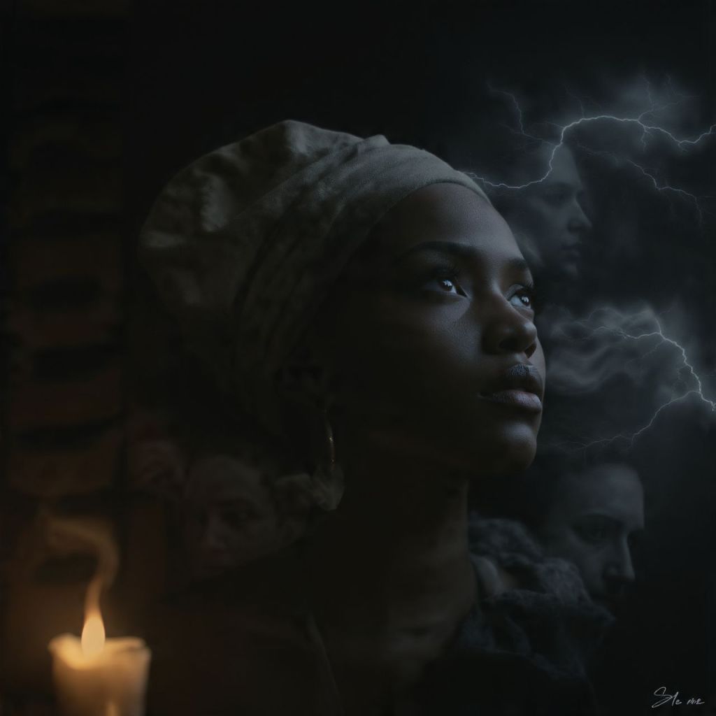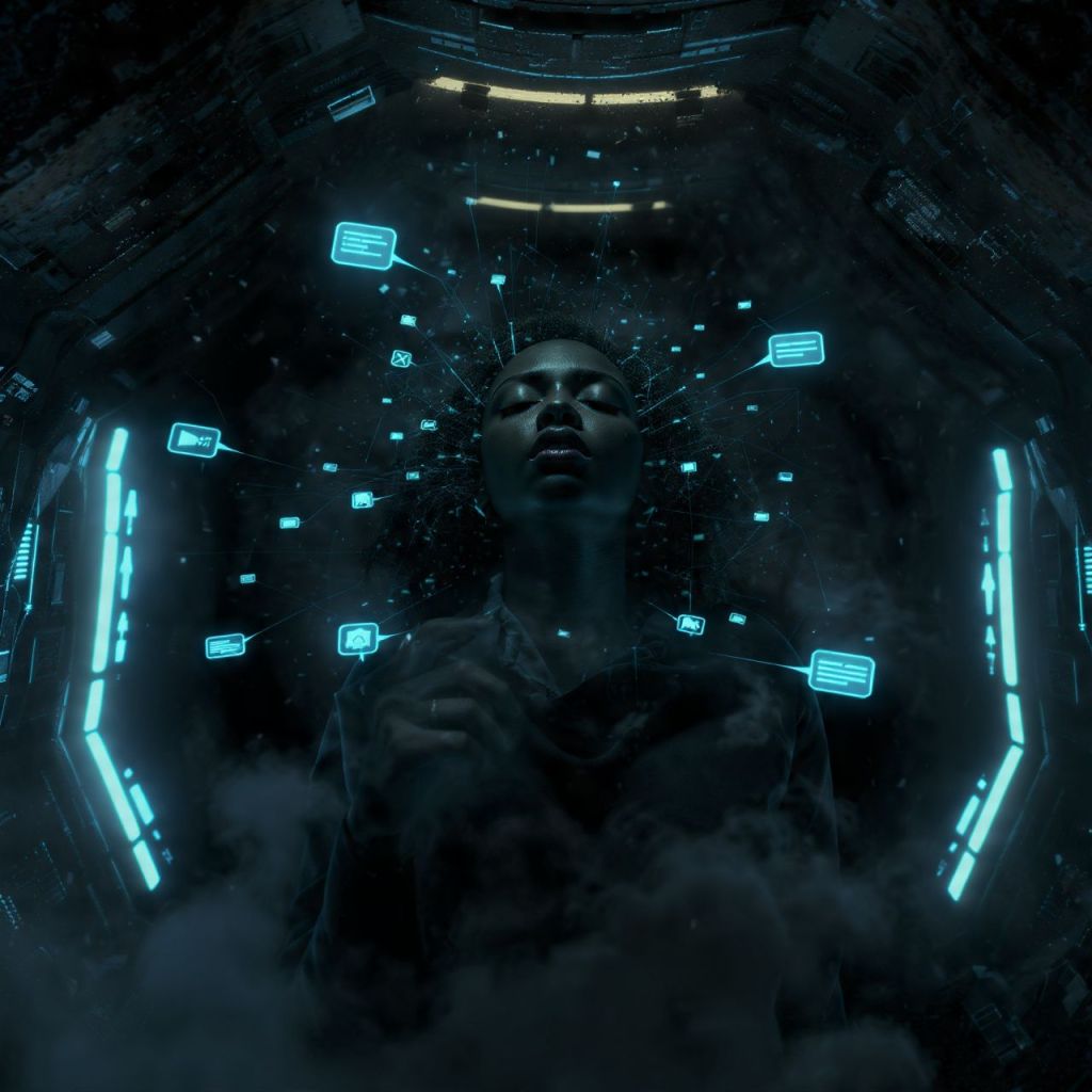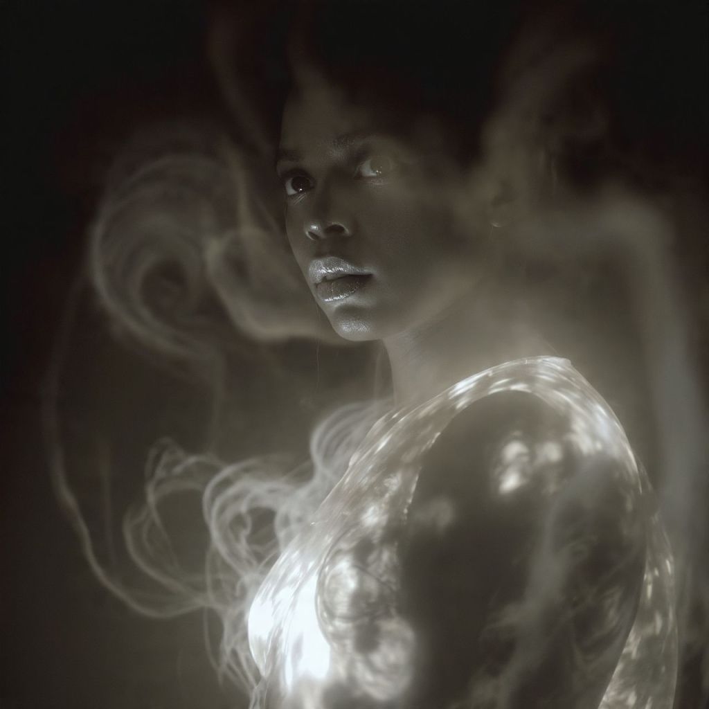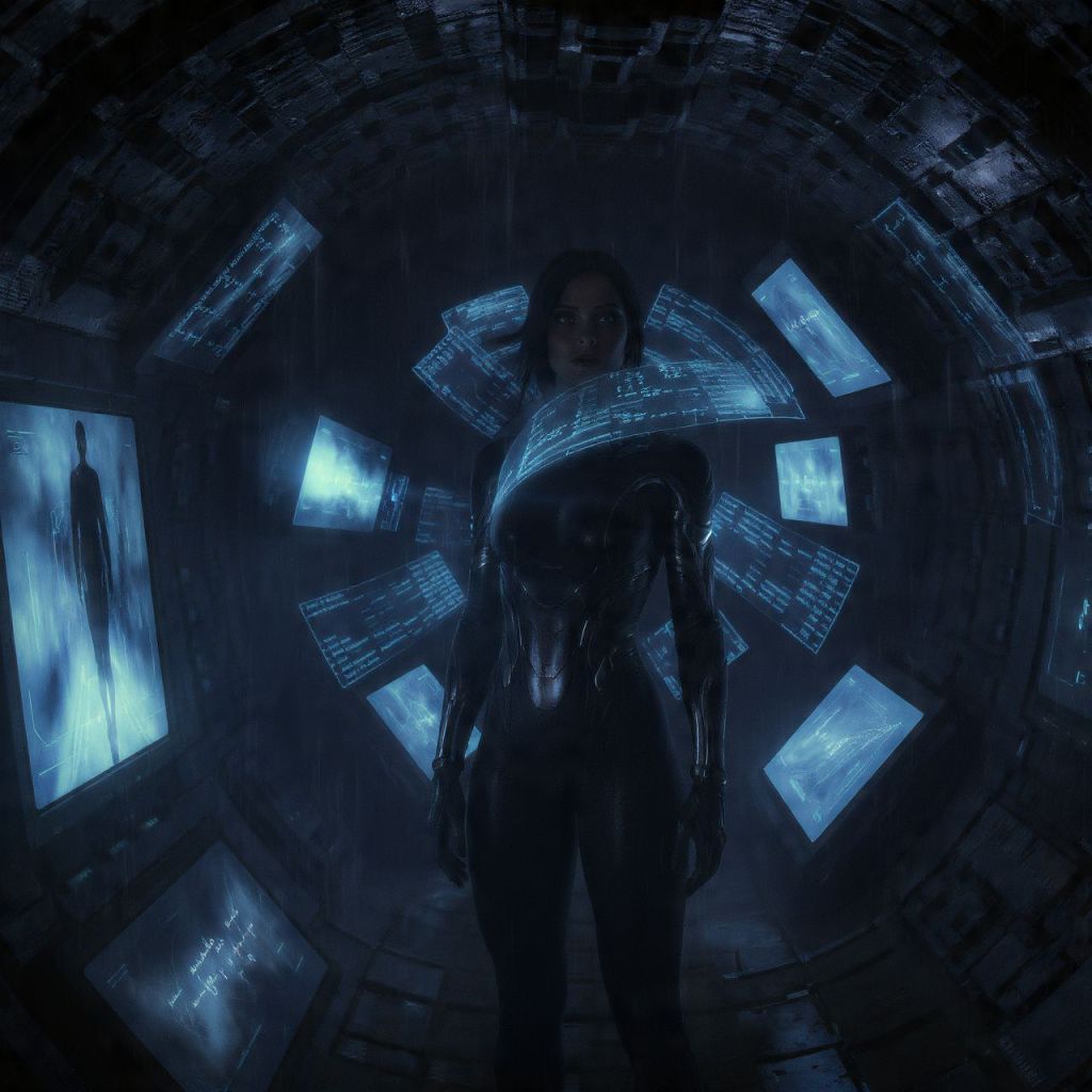 Thousands of voices whispering inside her consciousness — ancestors, angels, timelines, future versions of herself calling out: