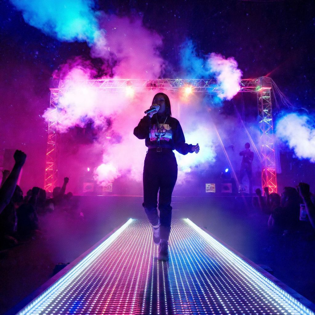 The beat is heavy, bass shaking the room, and the crowd goes WILD.
