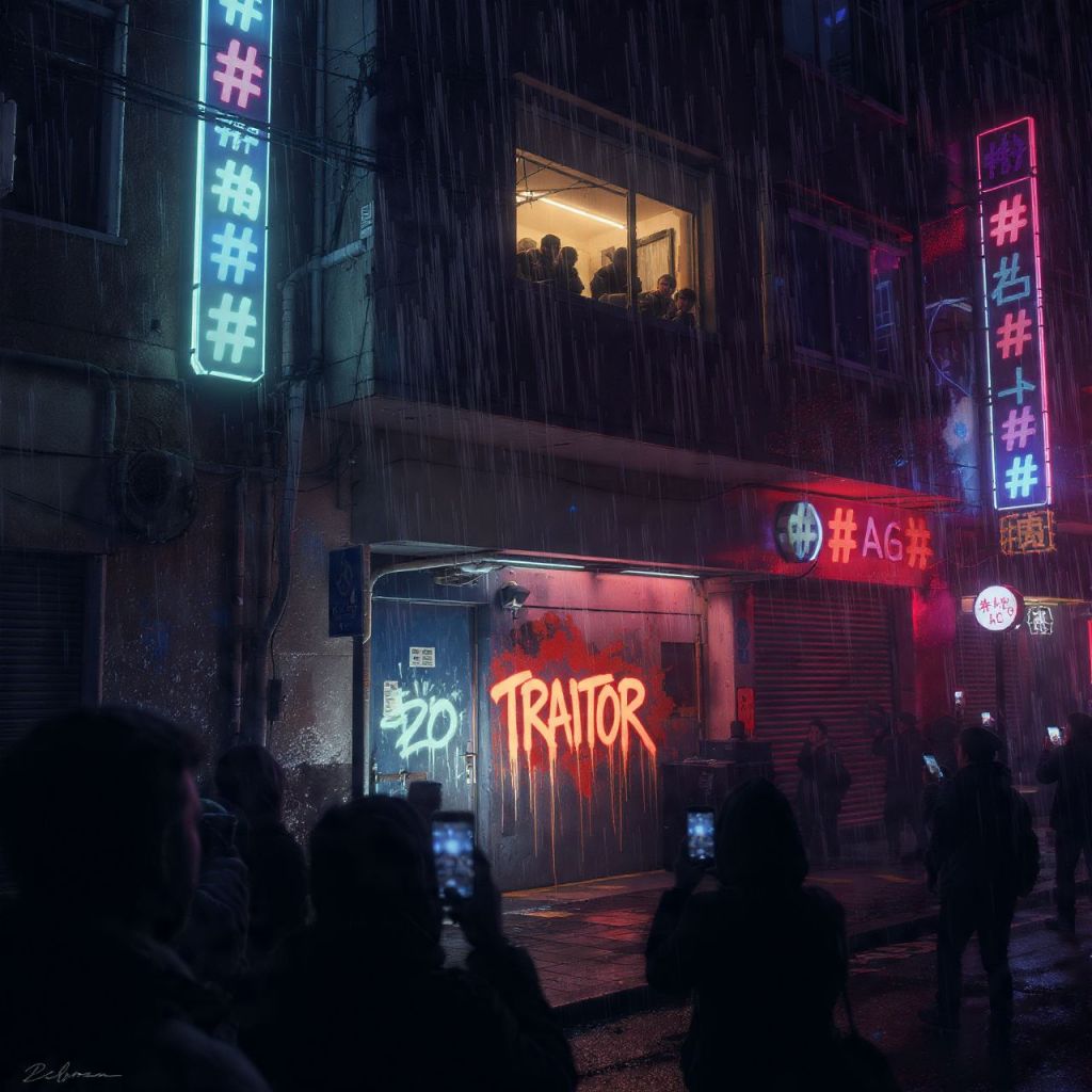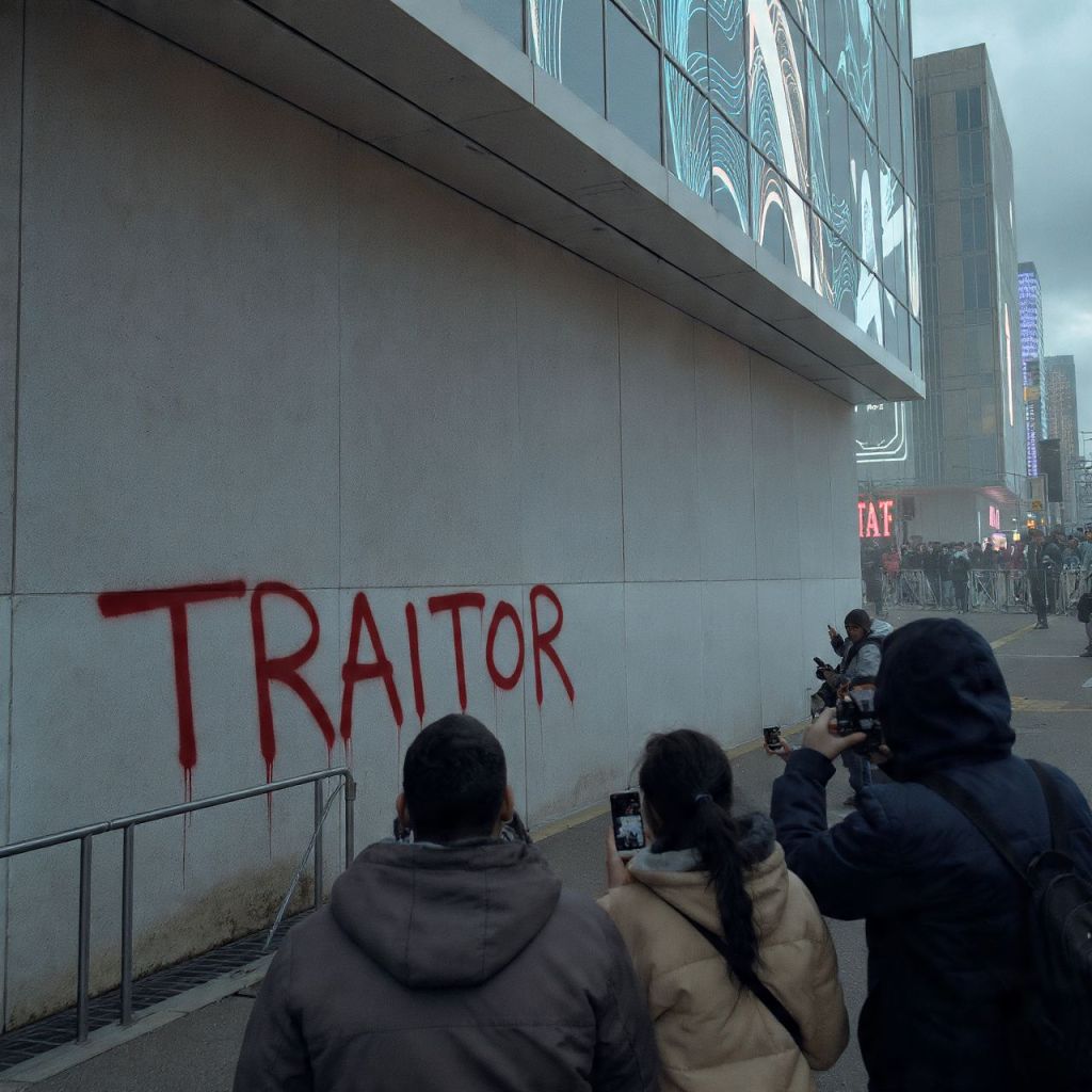 Someone spray paints “TRAITOR” across Marcella’s apartment door.