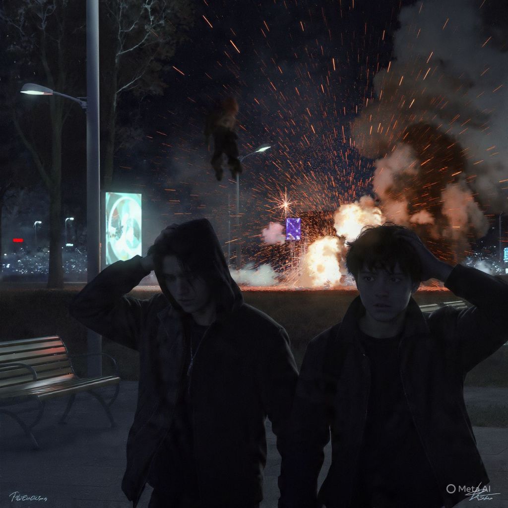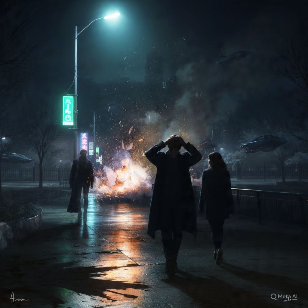 A nearby streetlight explodes.